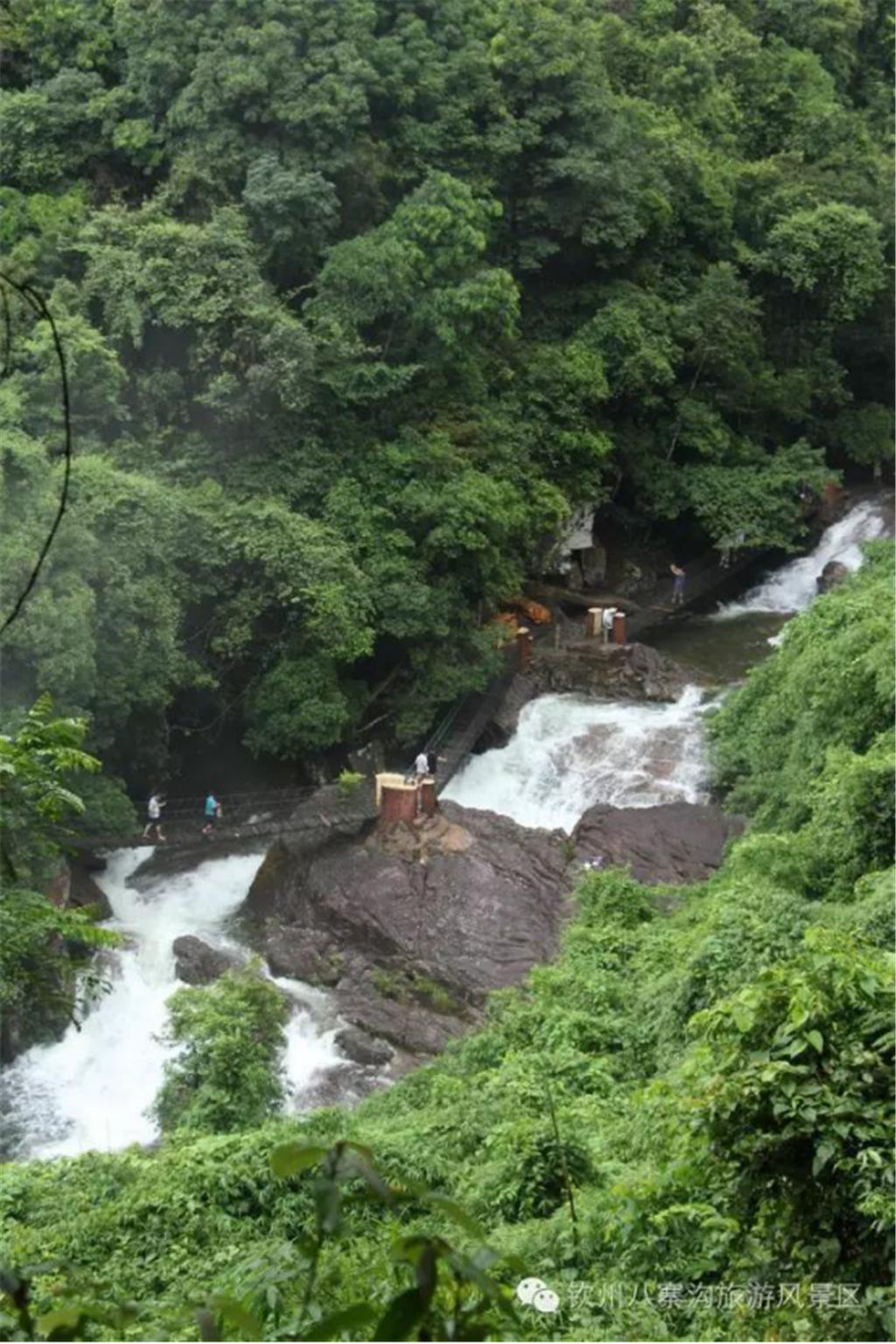 欽州的八寨溝與四川的九寨溝一樣,都具有豐饒的水源,異常清澈,天然原生態(tài),均為未遭到現(xiàn)代文明入侵和污染的圣潔凈土。也許是八寨溝的水都發(fā)自十萬(wàn)大山的深處吧,匯聚著眾多的山泉沿著溝壑奔騰而下,一路隨心翻浪,一路高亢歡歌,從而在長(zhǎng)年的沖擊中形成了大大小小的泉潭,并且順著山勢(shì)形成了不少或大或小的瀑布。
