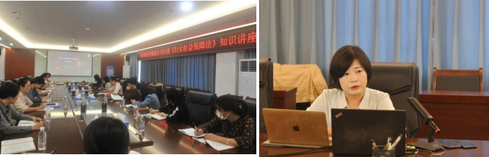 (圖為律師在為女職工上《婦女權益保障法》知識講座)