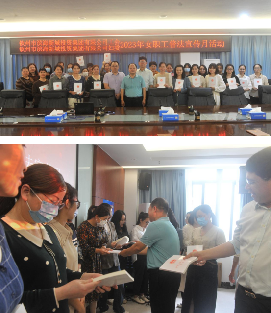 在女職工普法宣傳月中,市濱海投資集團公司婦委還組織開展了“巾幗心向黨 奮進新征程”系列活動,通過向全體女職工開展黨的二十大精神微宣講、“情系女職工,法在你身邊”知識問答、贈送《民法典》等活動,切實讓普法宣傳“走心” ,學法用法“入心”。