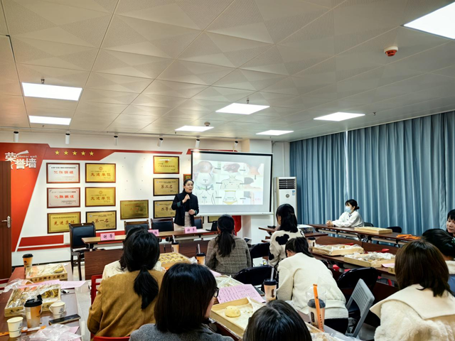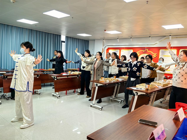 授課過程中,講師還為女職工設(shè)置了中醫(yī)文化體驗環(huán)節(jié)。專業(yè)的中醫(yī)養(yǎng)生教練身著傳統(tǒng)服飾,身姿矯健地站在前方,為女職工們示范八段錦的標準動作。“雙手托天理三焦,左右開弓似射雕……” 教練一邊口中念念有詞,一邊緩緩展示著一招一式,動作行云流水、剛?cè)嵯酀>毩曔^程中,女職工們屏氣斂息,專注于每一個動作的細節(jié),感受著身體的拉伸與舒展,仿佛在一招一式間與古老的中醫(yī)養(yǎng)生智慧對話。八段錦不僅讓女職工們體驗到傳統(tǒng)健身方式的魅力,更在動靜結(jié)合中舒緩了身心壓力,調(diào)節(jié)了氣息。許多女職工表示,練習完八段錦后,身體微微發(fā)熱,整個人都神清氣爽,仿佛充滿了能量。