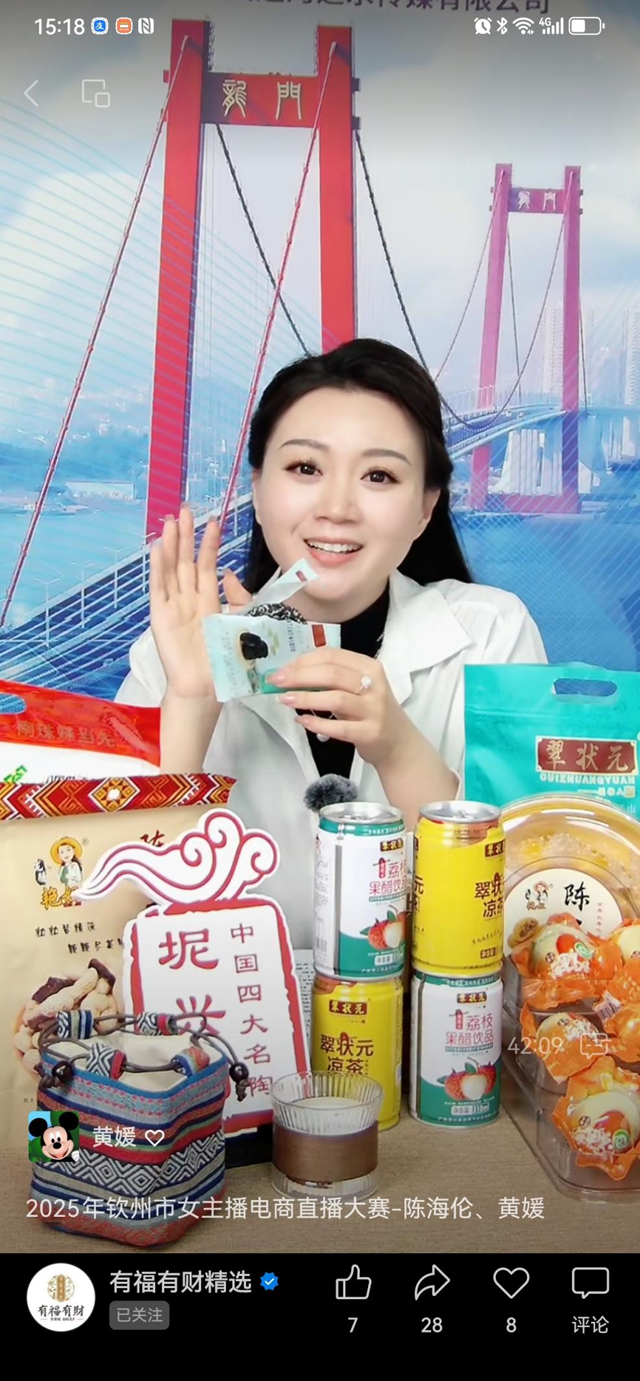 比賽采使用欽州市融媒體中心官方賬號“有福有財精選”在規(guī)定的1.5小時內(nèi)進行直播帶貨。期間,參賽者需自行策劃直播流程、設(shè)計話術(shù)、與觀眾互動等。比賽主要考察參賽者的主題把握、內(nèi)容創(chuàng)新、直播節(jié)奏掌控及帶貨能力等。在此次比賽中,陳海倫與黃媛充分展現(xiàn)出精湛實力,憑借精彩發(fā)揮與卓越表現(xiàn)一路過關(guān)斬將。在她們比賽直播期間,集團公司全體員工懷著高漲的熱情,紛紛涌入直播間,大家積極發(fā)送彈幕為她們加油鼓勁,點贊助力,滿屏的支持與鼓勵營造出熱烈氛圍。最終,在全體員工的殷切期盼與加油聲中,陳海倫與黃媛不負眾望,成功斬獲個人賽二等獎的優(yōu)異成績 。