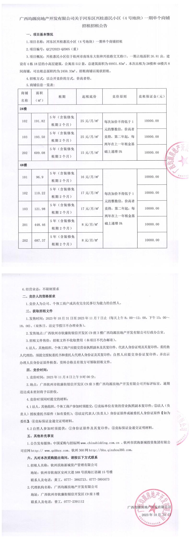 河?xùn)|區(qū)興桂惠民小區(qū)(4號(hào)地塊)一期單個(gè)商鋪招租招租公告