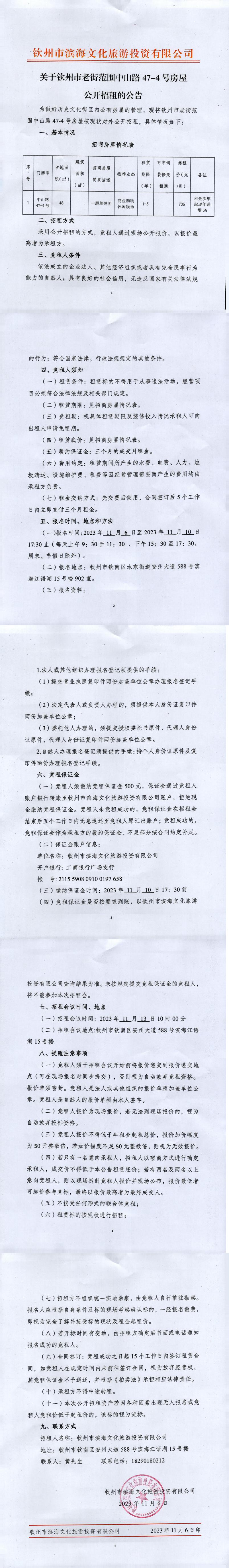 欽州市老街范圍中山路47-4號(hào)房屋公開(kāi)招租公告