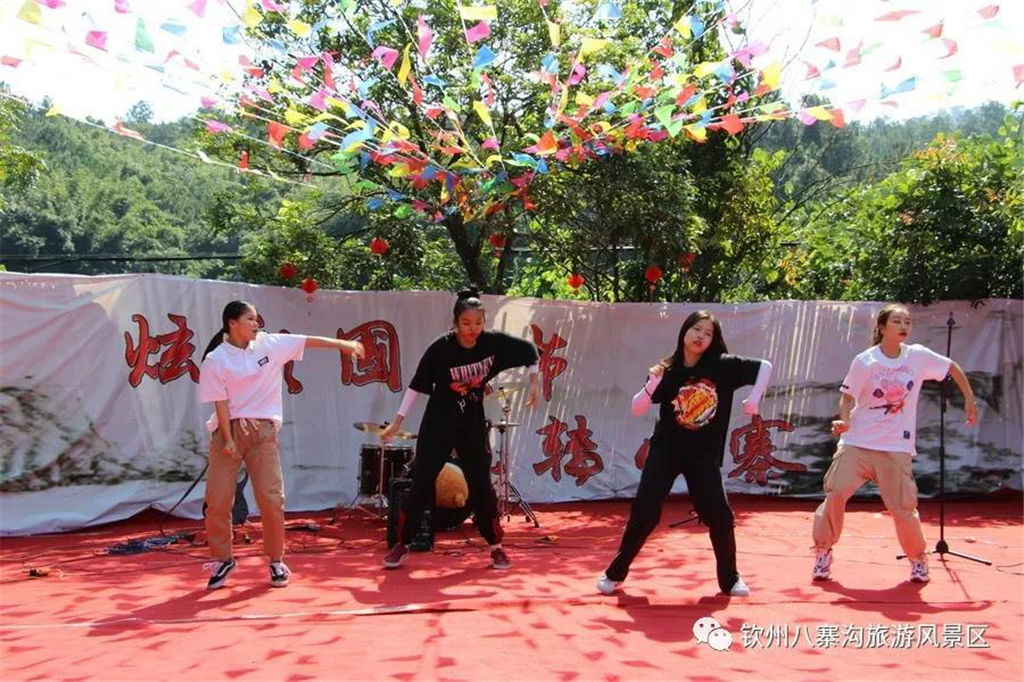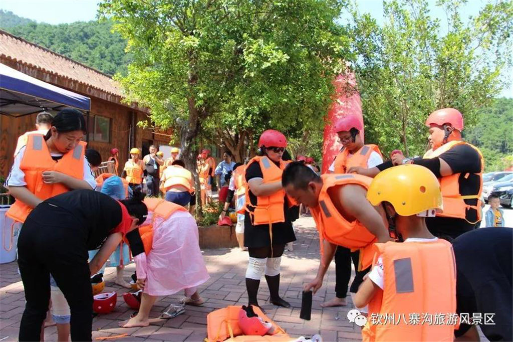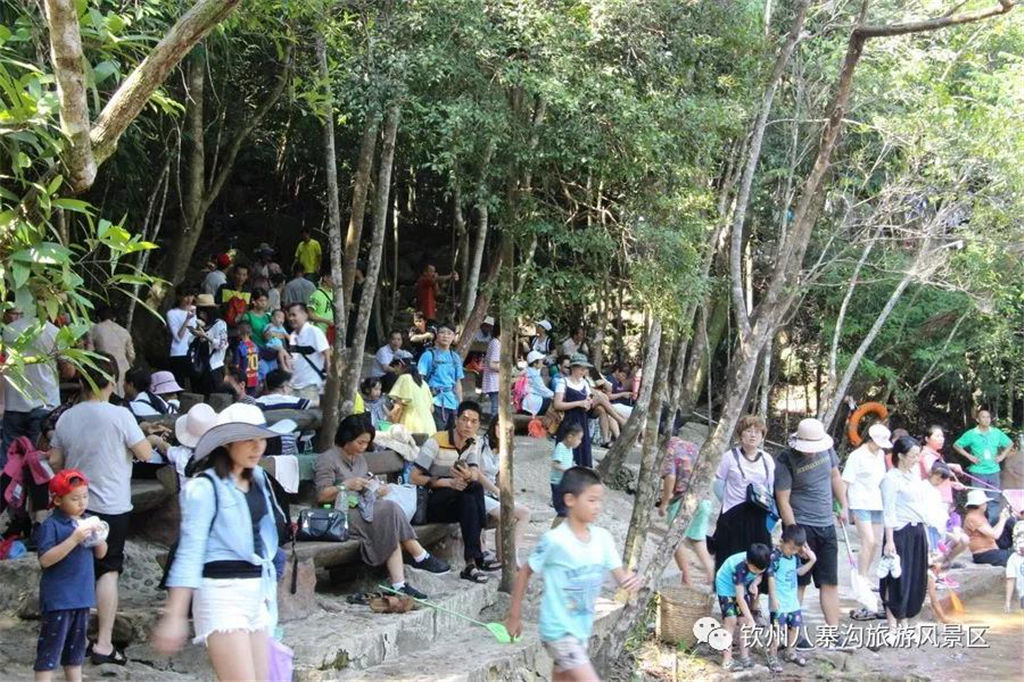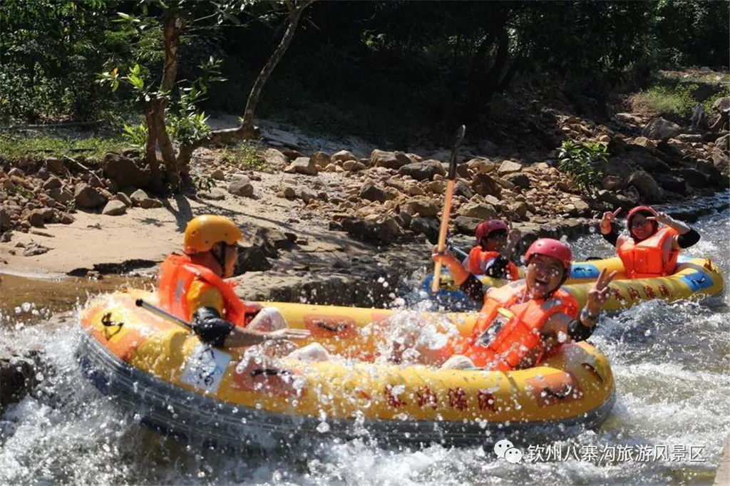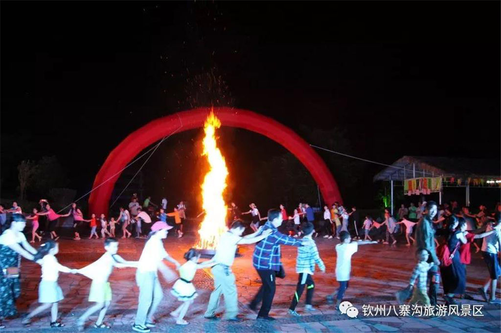 國慶期間景區(qū)舉辦以“炫彩國慶節(jié),玩轉(zhuǎn)八寨溝”為主題的系列活動受到眾多游客親睞。游客們白天可以觀看精彩歌舞文藝演出,玩真人CS運(yùn)動,品嘗各種各樣的特產(chǎn)美食,學(xué)制作欽州坭興陶,體驗欽州第一漂—八寨溝森林漂流,登山徒步暢游山水,呼吸新鮮空氣,天然水潭戲水其樂無窮,整個景區(qū)一片游客如織、喜樂融融的景象。