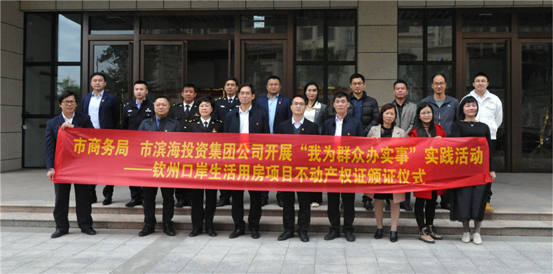 2021年11月23日上午,市商務局、市濱海投資集團公司在市濱海投資集團公司12樓黨員活動室聯(lián)合開展“我為群眾辦實事”主題實踐活動,舉行欽州口岸生活用房項目不動產(chǎn)權證頒證儀式。市濱海投資集團公司黨委副書記卜玉聲同志主持會議,市商務局黨組書記、一級調(diào)研員王紹平同志出席會議并講話。