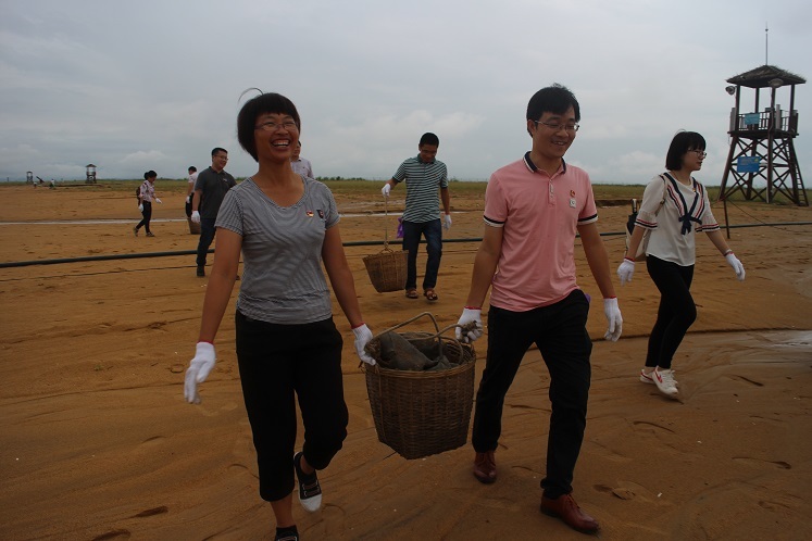 風(fēng)雨停歇之時(shí),第一、二黨支部全體黨員捋起袖子,提起垃圾筐,在黃金浴場上進(jìn)行“拉網(wǎng)式”清撿垃圾活動(dòng)?;顒?dòng)中,大家分工協(xié)作,團(tuán)結(jié)互助,忙得不亦樂乎,現(xiàn)場一片熱火朝天的景象。沙灘上的垃圾大多為煙蒂、石頭、礦泉水瓶等,考慮群眾在沙灘上大都赤腳走路,為了群眾的安全,黨員們將沙灘上的貝殼也都一并清撿,清除貝類劃傷的風(fēng)險(xiǎn)。其中一位老黨員向大家說到:“大家一定不要覺得清潔活動(dòng)就只是單純地?fù)炖覀儞斓目啥际?lsquo;黃金’啊,別看小小一個(gè)煙蒂,我們把它撿起來了,環(huán)境就美了,群眾就會(huì)更加自覺了,那么誰也不舍得扔下手中的這枚‘黃金’了。所以,我們黨員今天的清潔行動(dòng)不僅是推行群眾文明出行的理念,更是引導(dǎo)群眾自覺保護(hù)環(huán)境,關(guān)愛自然,從而讓清潔、環(huán)保成為每個(gè)人的責(zé)任。”老黨員看似平淡的話語,卻是對我們的諄諄教導(dǎo),進(jìn)一步激發(fā)了我們身為一名共產(chǎn)黨員的責(zé)任感和使命感,同時(shí)也讓我們深刻認(rèn)識(shí)到生態(tài)環(huán)境建設(shè)和保護(hù)迫在眉睫。