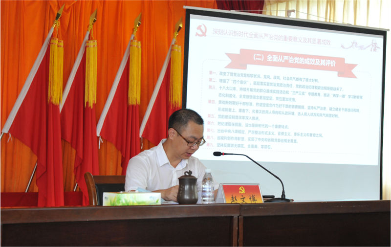 為推動落實《黨委(黨組)落實全面從嚴治黨主體責任規(guī)定》,按照市委深入學習貫徹黨中央和自治區(qū)黨委關于全面從嚴治黨各項部署要求,6月22日下午,集團公司黨委書記趙文博同志以《積極推動全面從嚴治黨向縱深發(fā)展》為主題,講了一堂生動的全面從嚴治黨專題黨課。歷時一個半小時,67名黨員接受黨課教育。