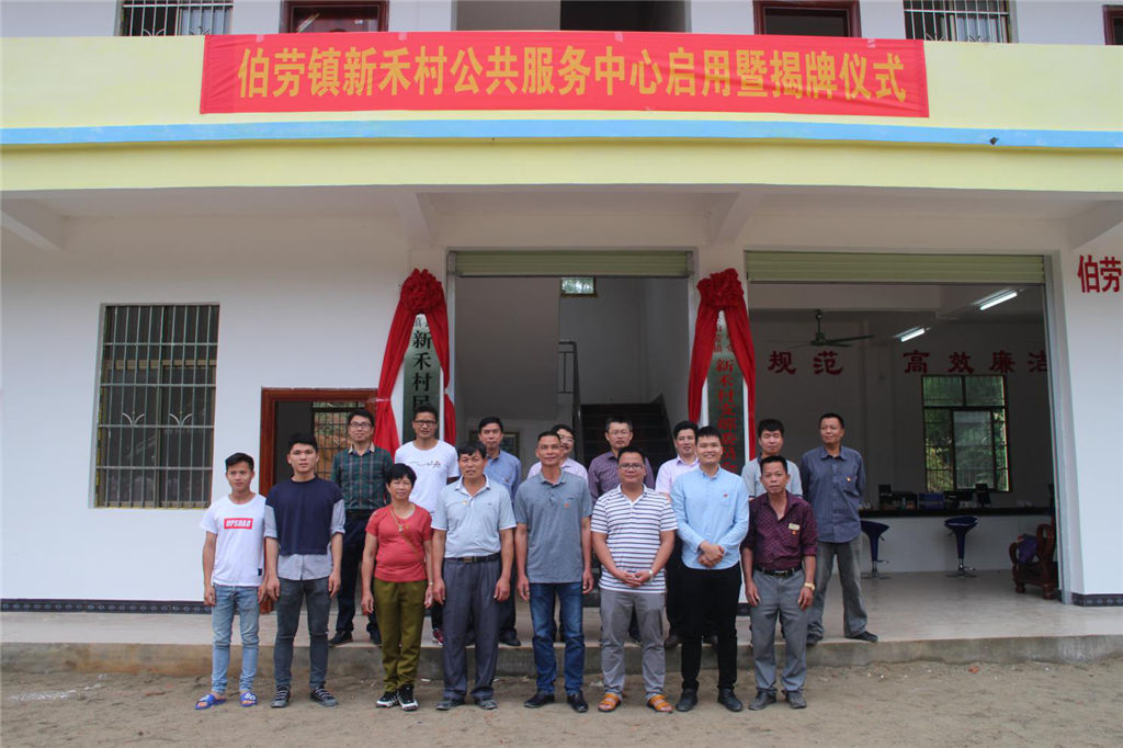 2018年4月28日上午,集團(tuán)公司扶貧幫扶聯(lián)系村——靈山縣伯勞鎮(zhèn)新禾村在新公共服務(wù)中心舉行揭牌儀式。我集團(tuán)公司和伯勞鎮(zhèn)人民政府、市檔案局、市林科所主要領(lǐng)導(dǎo)及駐村第一書(shū)記、包村工作組、村委全體成員齊聚新公共服務(wù)中心大樓前,共同見(jiàn)證新禾村新公共服務(wù)中心大樓揭牌儀式。