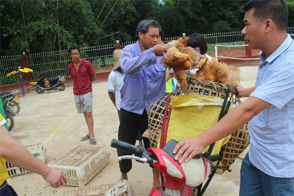 當(dāng)天上午,運(yùn)送雞苗的貨車從欽州市出發(fā),經(jīng)過(guò)1個(gè)小時(shí)的行程來(lái)到了靈山縣伯勞鎮(zhèn)新禾村公共服務(wù)中心,此時(shí),貧困戶們已經(jīng)滿心歡喜地到來(lái),攜帶裝雞苗的籠子耐心等候著?,F(xiàn)場(chǎng),集團(tuán)公司副總經(jīng)理?xiàng)钚聴澰诠ぷ魅藛T的協(xié)助下,依次給貧困戶們發(fā)放了雞苗,楊新棟笑著對(duì)貧困戶說(shuō)到:“大家領(lǐng)取到的雞苗平均每只重600克左右,雞苗在運(yùn)出養(yǎng)殖場(chǎng)之前都已閹割過(guò)了,具有生長(zhǎng)發(fā)育快、抗病能力強(qiáng)、成活率高、市場(chǎng)效益好等特點(diǎn),大家回去后要管護(hù)好雞苗,讓扶貧雞真正為大家?guī)?lái)脫貧希望。”,看著一只只活潑亂跳、帶著脫貧希望的雞苗裝進(jìn)了自家的籠子里,貧困戶們笑得合不攏嘴,心里樂(lè)開(kāi)了花。