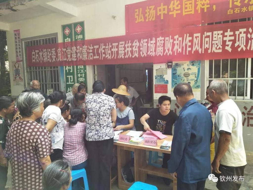 ▲黨建和廉潔工作站工作人員在良江村開(kāi)展扶貧領(lǐng)域腐敗和作風(fēng)問(wèn)題專項(xiàng)治理公開(kāi)大接訪活動(dòng)