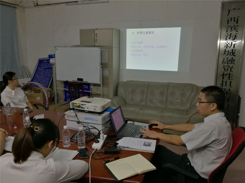 為規(guī)范公司員工的業(yè)務(wù)辦理流程,學(xué)習(xí)和鞏固擔(dān)保行業(yè)相關(guān)法律知識(shí),2019年10月23日,廣西濱海新城融資擔(dān)保有限公司組織全體員工進(jìn)行了擔(dān)保行業(yè)相關(guān)法律知識(shí)的學(xué)習(xí)。本次內(nèi)部培訓(xùn)會(huì)由執(zhí)行董事阮經(jīng)欽主持、楊運(yùn)德總經(jīng)理主講,重點(diǎn)解讀了《中華人民共和國(guó)擔(dān)保法》、《融資擔(dān)保公司監(jiān)督管理?xiàng)l例》及四項(xiàng)配套制度等法律法規(guī)文件。
