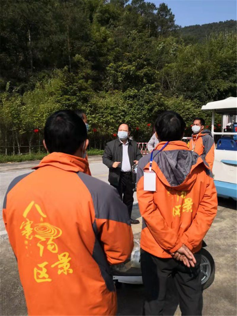 二、為進(jìn)一步傳達(dá)市委、市人民政府有關(guān)疫情防控工作的相關(guān)文件精神,公司領(lǐng)導(dǎo)前往景區(qū)現(xiàn)場指導(dǎo)疫情防控工作,特別強(qiáng)調(diào)當(dāng)前防控工作形式嚴(yán)峻,景區(qū)員工要增強(qiáng)緊迫感和責(zé)任感,切實(shí)加強(qiáng)景區(qū)人員出入管理及消毒清潔,保障游客及公司員工的身體健康和生命安全;