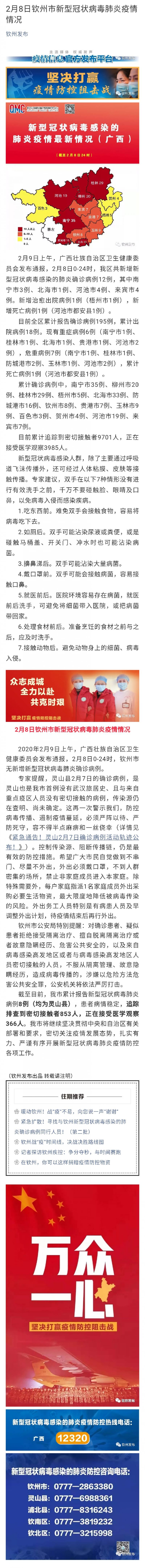 2月9日欽州市新型冠狀病毒肺炎疫情情況