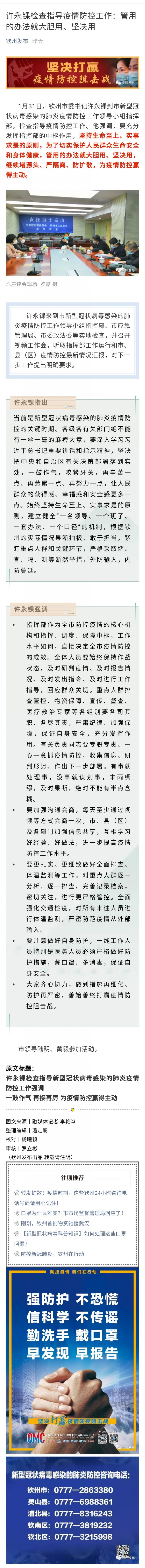 欽州市委書記許永錁深入一線,隨機(jī)抽查疫情防控工作情況