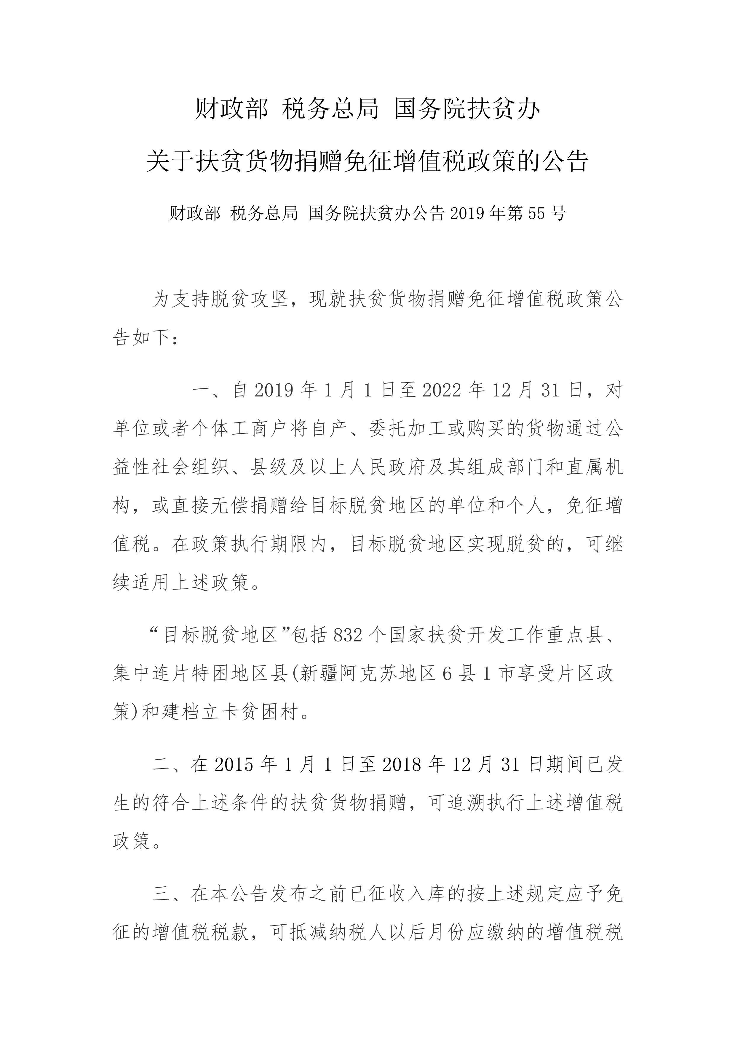 關(guān)于扶貧貨物捐贈免征增值稅政策的公告