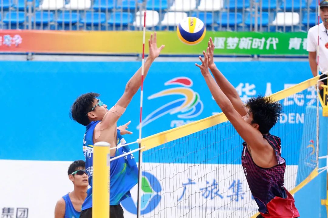 △學(xué)青會(huì)男子沙灘排球決賽。融媒體記者 肖鑫 攝