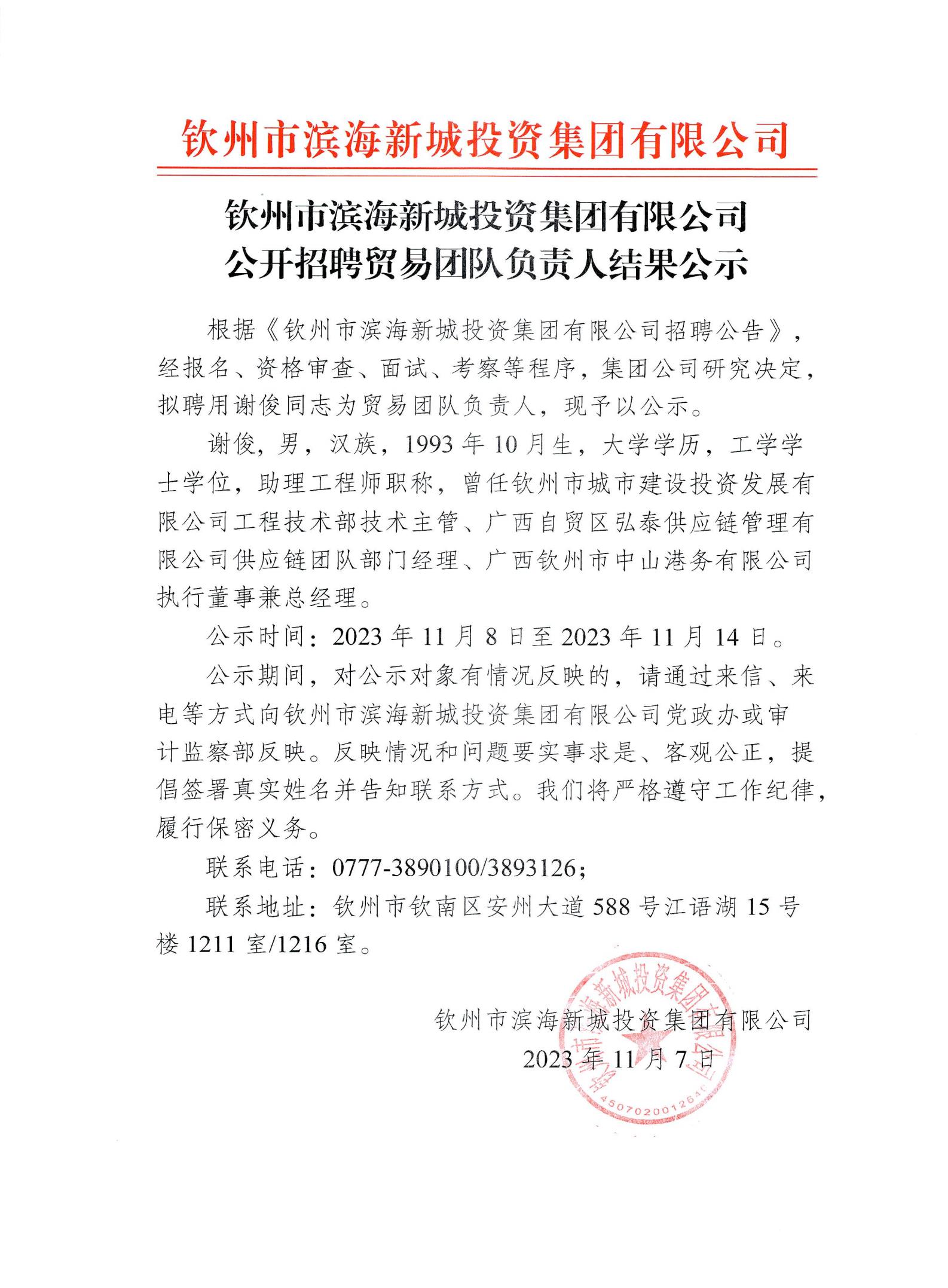 公開(kāi)招聘貿(mào)易團(tuán)隊(duì)負(fù)責(zé)人結(jié)果公示