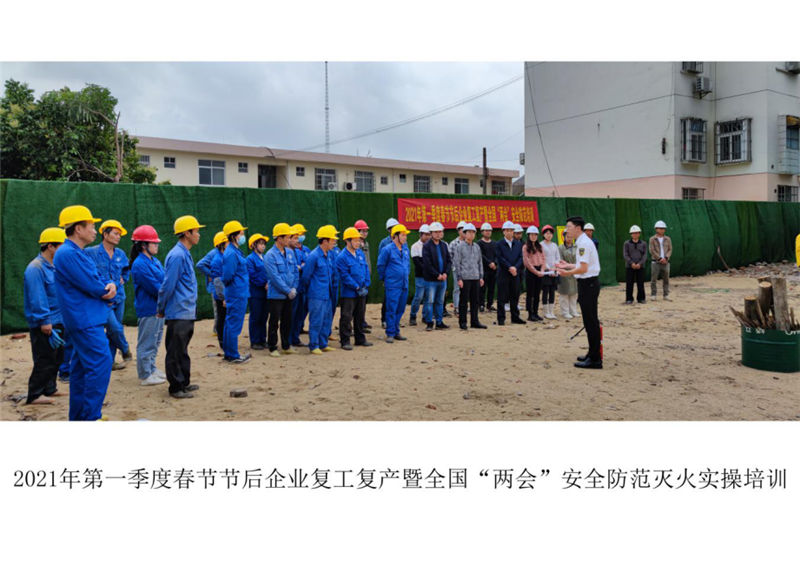為有效預防各類火災事故的發(fā)生,切實做好2021年春節(jié)節(jié)后企業(yè)復工復產暨全國“兩會”安全防范工作,3月9日我集團公司開展了復工復產暨全國“兩會”安全防范的培訓工作,通過線上直播培訓復工復產安全防范、春季火災預防、初期火災撲救及逃生自救辦法,并結合發(fā)生的火災案例講解火災發(fā)生的原因及火災過程中的思想和行為,提高安全防范意識。在線下我集團公司聯(lián)合相關施工單位在項目工地上開展滅火實操演練,學習干粉滅火器的使用方法和注意事項。