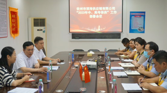 2023年高考、中考即將到來,為確保中高考期間廣大師生的飲食安全,嚴(yán)防食物中毒事故發(fā)生,6月1日集團(tuán)公司黨委書記、董事長盧長任到欽州市濱海供應(yīng)鏈有限公司檢查食品安全及食材保供工作,并召開工作部署會議。集團(tuán)公司總工程師廖相榮陪同。