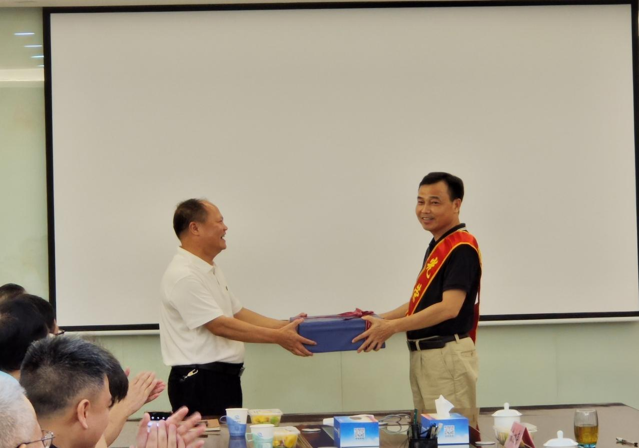 盧長任同志為余業(yè)勝同志頒發(fā)榮譽退休證書,集團公司工會主席楊新棟同志為余業(yè)勝同志送上了工會訂制的紀(jì)念品。