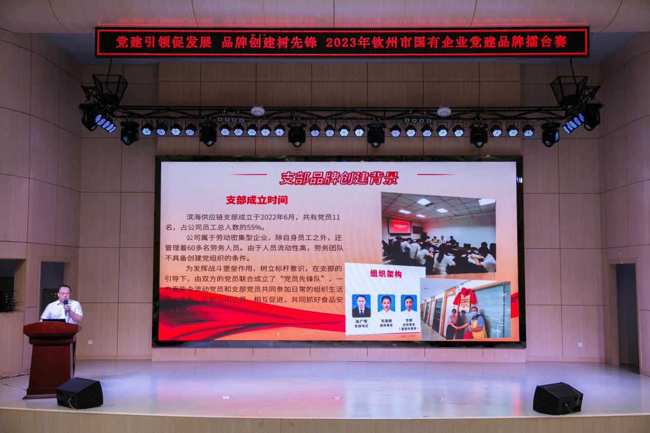 7月14日,由市委組織部、市國資委聯(lián)合舉辦的“黨旗引領(lǐng)促發(fā)展 品牌創(chuàng)建樹先鋒”2023年欽州市國有企業(yè)“十大黨建品牌”擂臺賽在市圖書館三樓報(bào)告廳舉行。本次擂臺賽,有市直、各縣(區(qū))等13個(gè)單位參加。經(jīng)過激烈角逐,集團(tuán)公司黨委下屬供應(yīng)鏈公司黨支部參賽的黨建品牌“黨旗引領(lǐng),食安先鋒 ”,被評為欽州市國有企業(yè)“十大黨建品牌”。