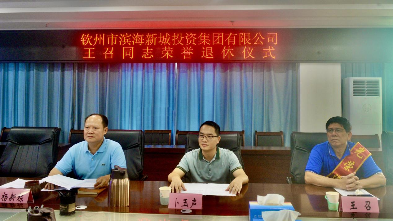 9月15日,市濱海投資集團(tuán)公司舉行王召同志榮譽(yù)退休儀式,歡送王召同志,表達(dá)對他的關(guān)心關(guān)愛之情,也激勵(lì)年輕干部砥礪初心、奮發(fā)前進(jìn),為開創(chuàng)集團(tuán)公司轉(zhuǎn)型升級新局面不懈奮斗。集團(tuán)公司黨委副書記、紀(jì)委書記卜玉聲參加儀式,集團(tuán)公司副總經(jīng)理、工會(huì)主席楊新棟同志主持儀式。