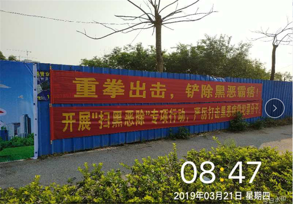 為抓好此項工作,通知各項目代表深入現(xiàn)場,并召集施工單位召開了專題動員會,并制定了具體的工作措施,如:張掛橫幅、微信群、qq群等渠道宣傳掃黑除惡行動。做到每個項目現(xiàn)場都在明顯位置張掛掃黑除惡標語的橫幅。