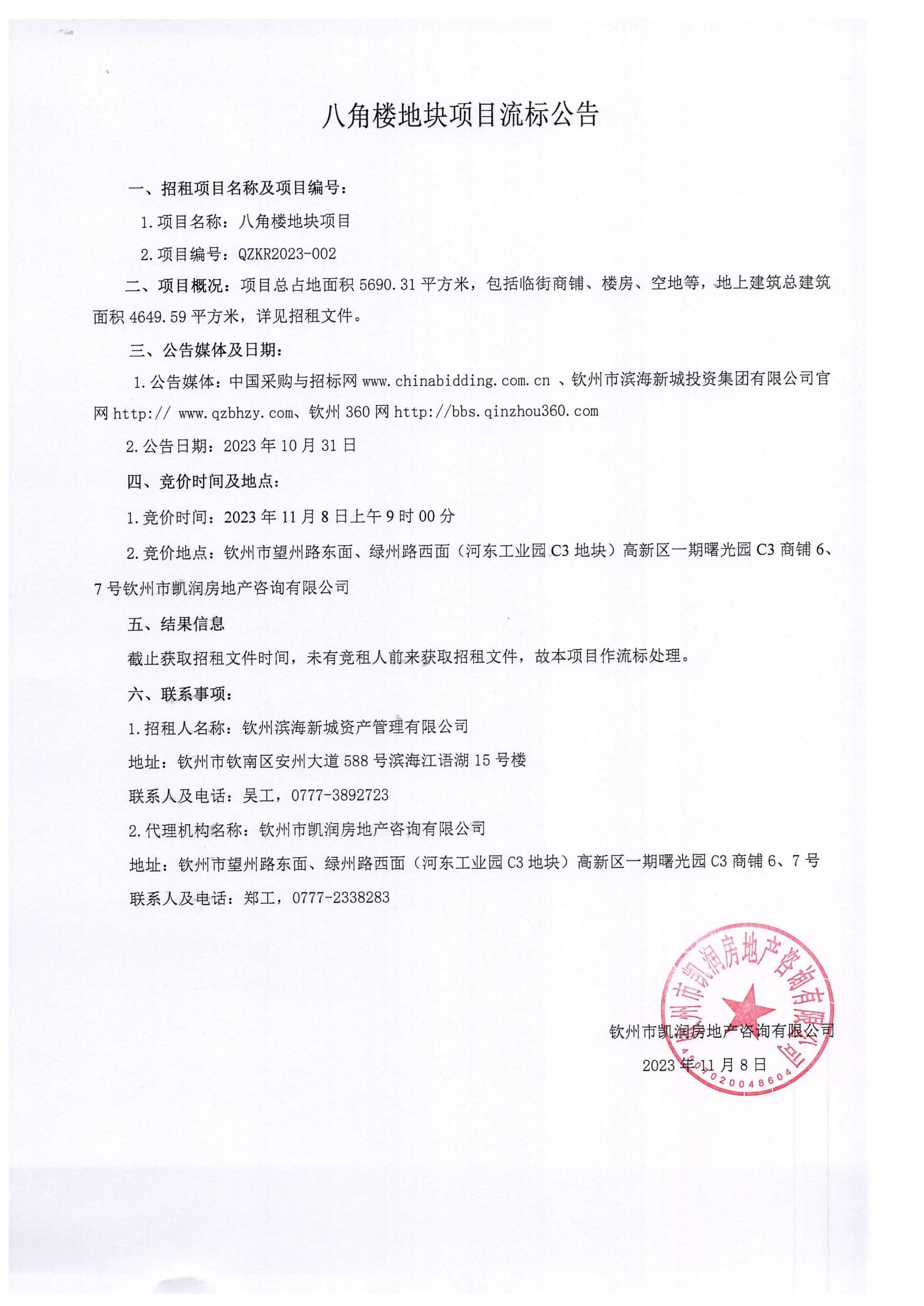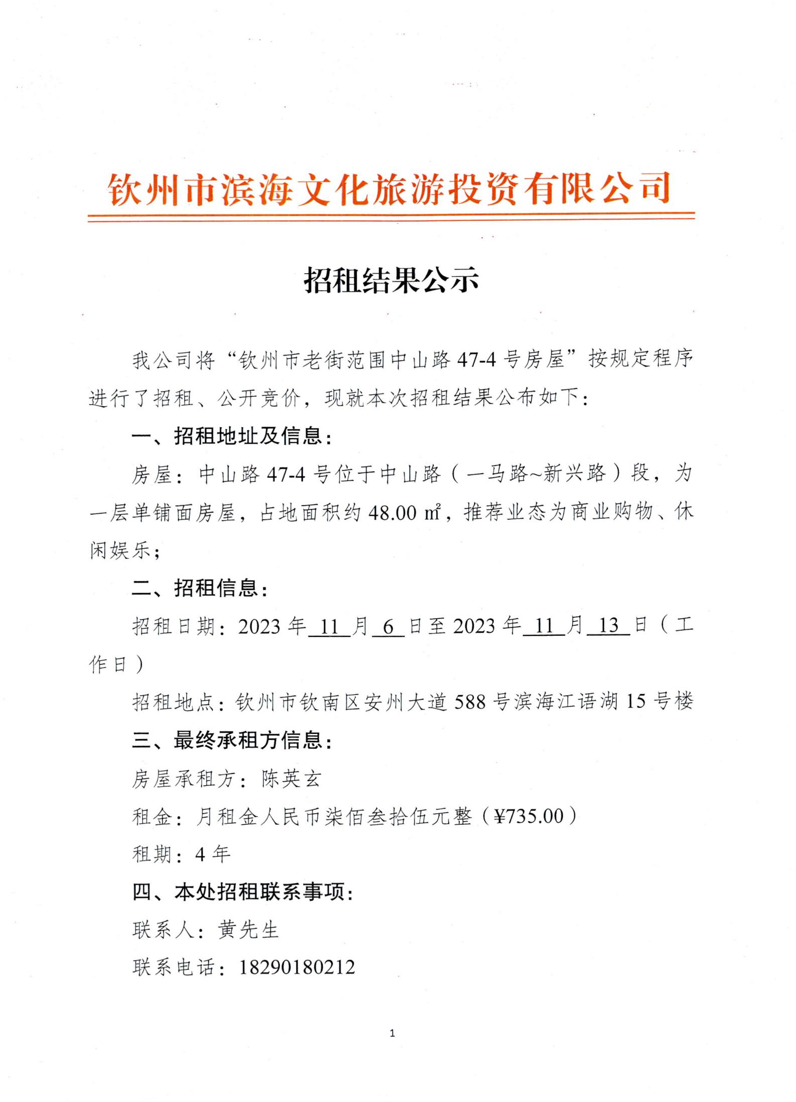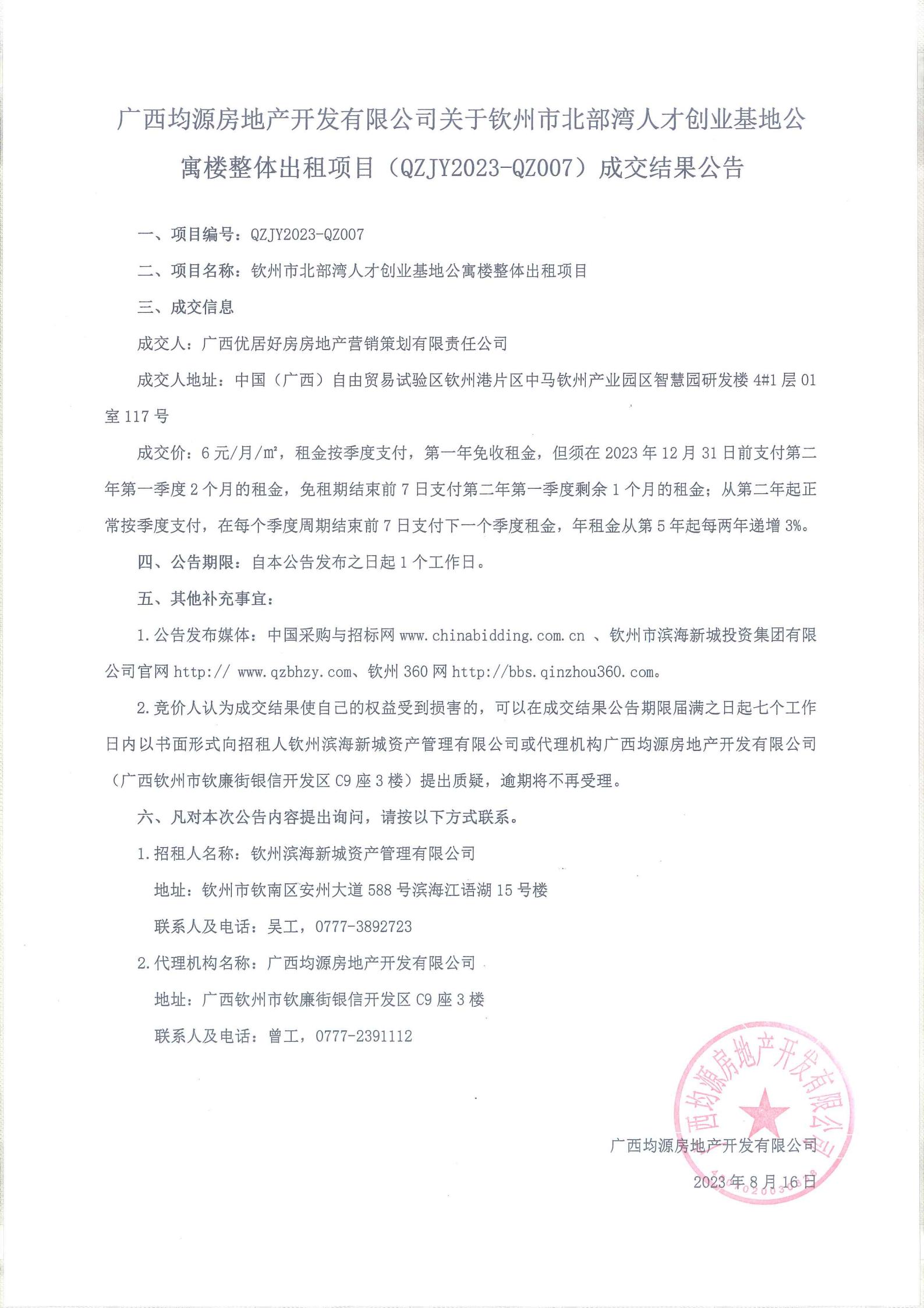 關于欽州市北部灣人才創(chuàng)業(yè)基地公寓樓整體出租項目成交結果公告