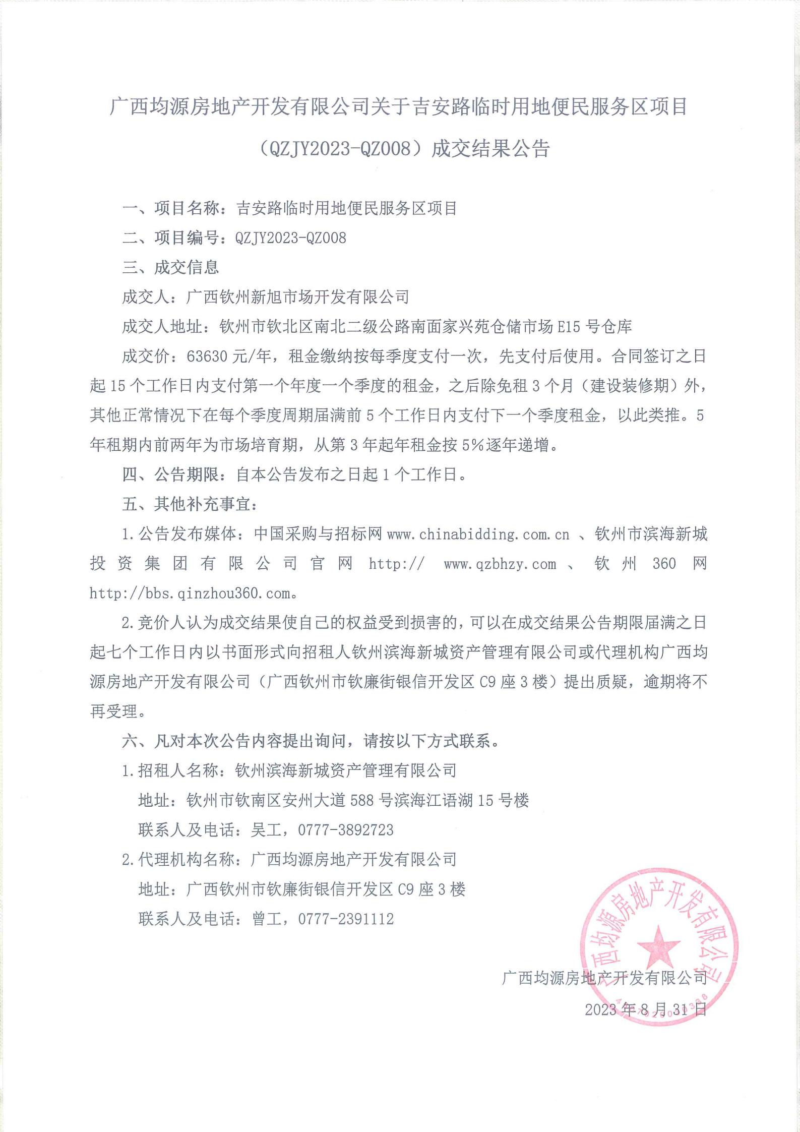 關于吉安路臨時用地便民服務區(qū)項目成交結果公告