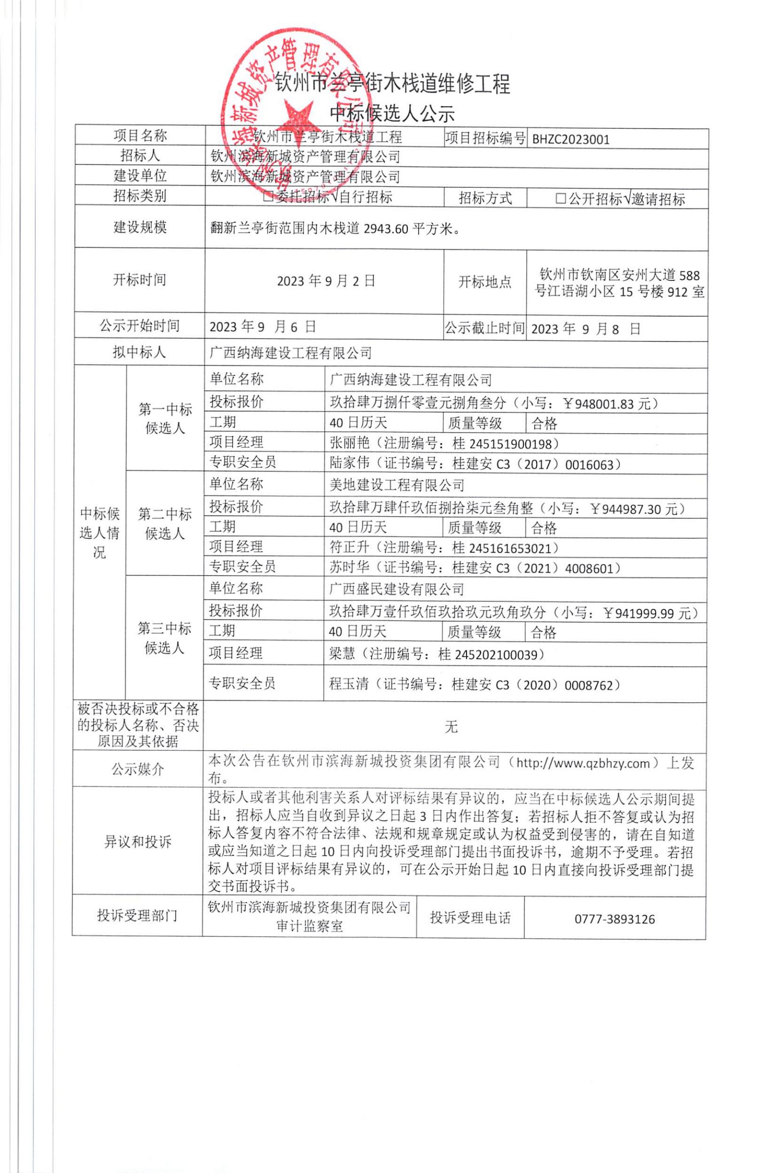 欽州市環(huán)島南路Ⅰ標段(北部灣大道-云湖路)地塊內10KV線路改遷工程(比選招標)中標候選人公示