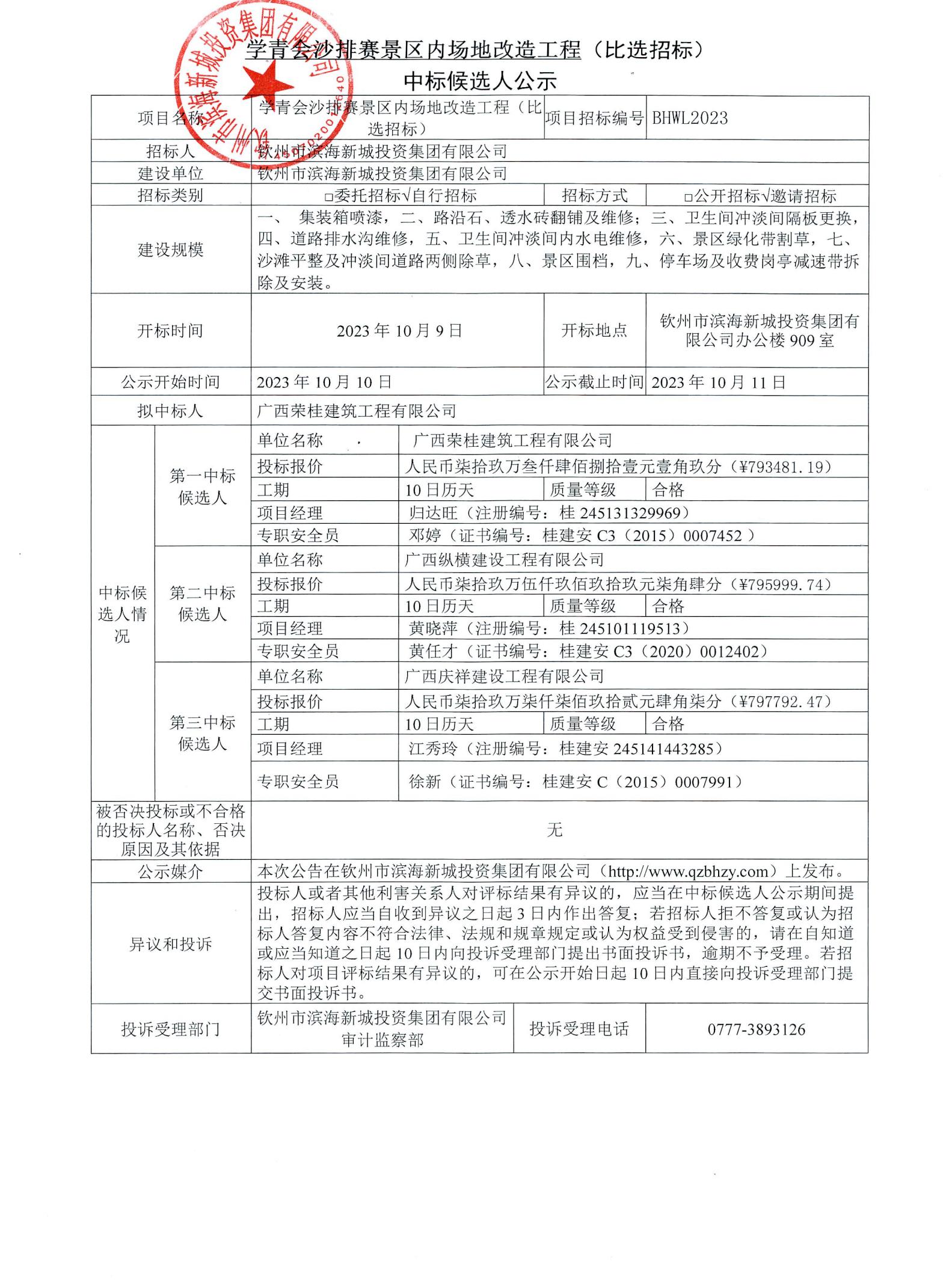 學青會沙排賽景區(qū)內場地改造工程(比選招標)中標候選人公示