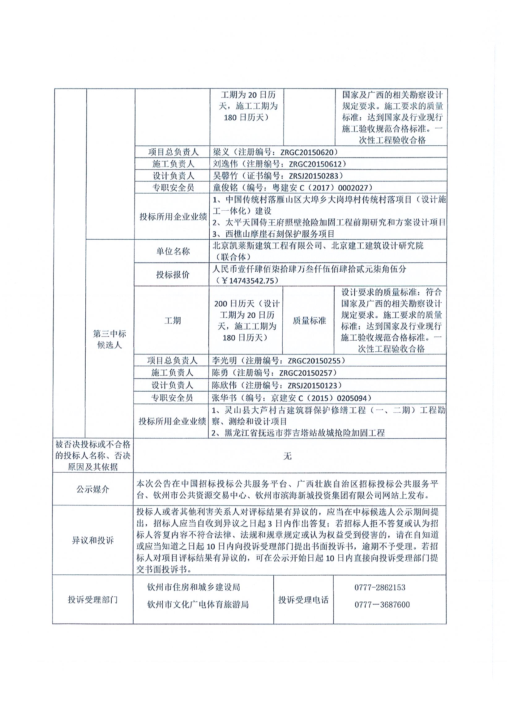 欽州市中山路、占鰲巷旅游開發(fā)項(xiàng)目(一期)蘇廷有、天后宮修繕項(xiàng)目工程設(shè)計(jì)-采購-施工(EPC)工程總承包中標(biāo)候選人公示
