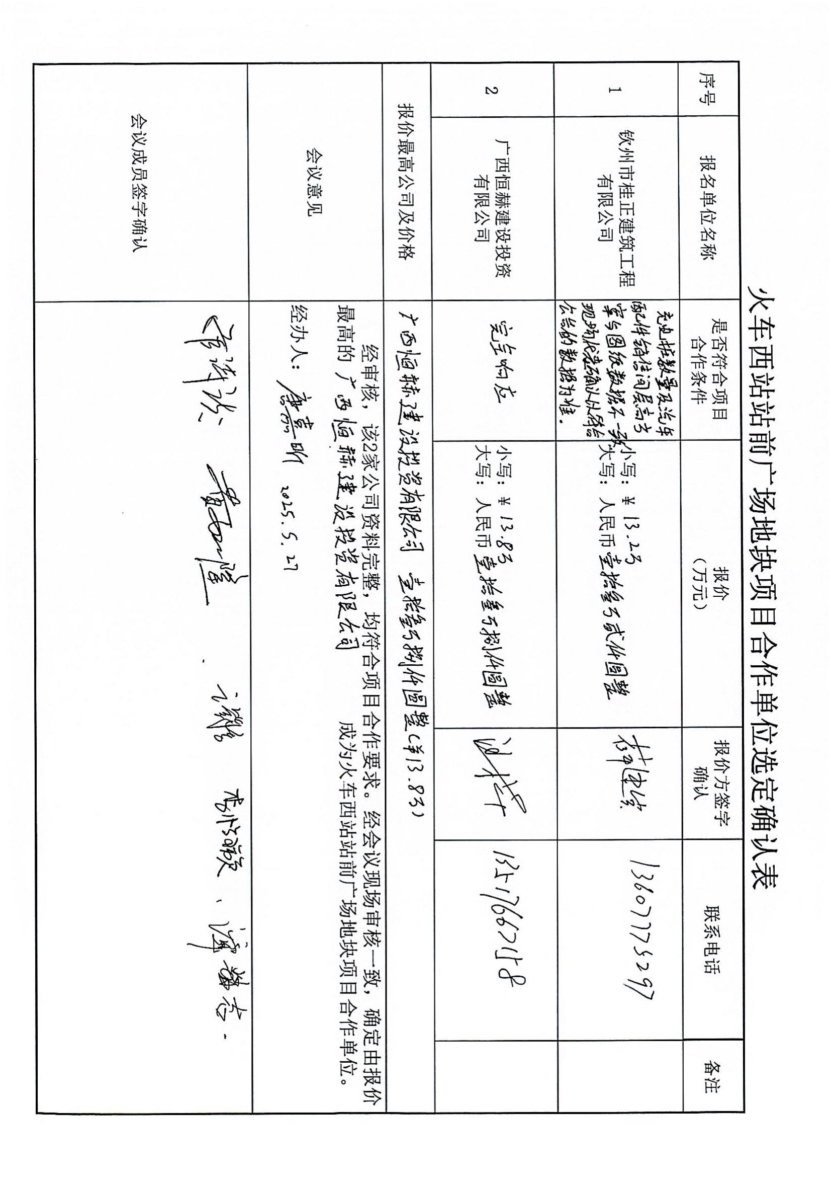 火車(chē)西站站前廣場(chǎng)地塊招租項(xiàng)目成交結(jié)果公告