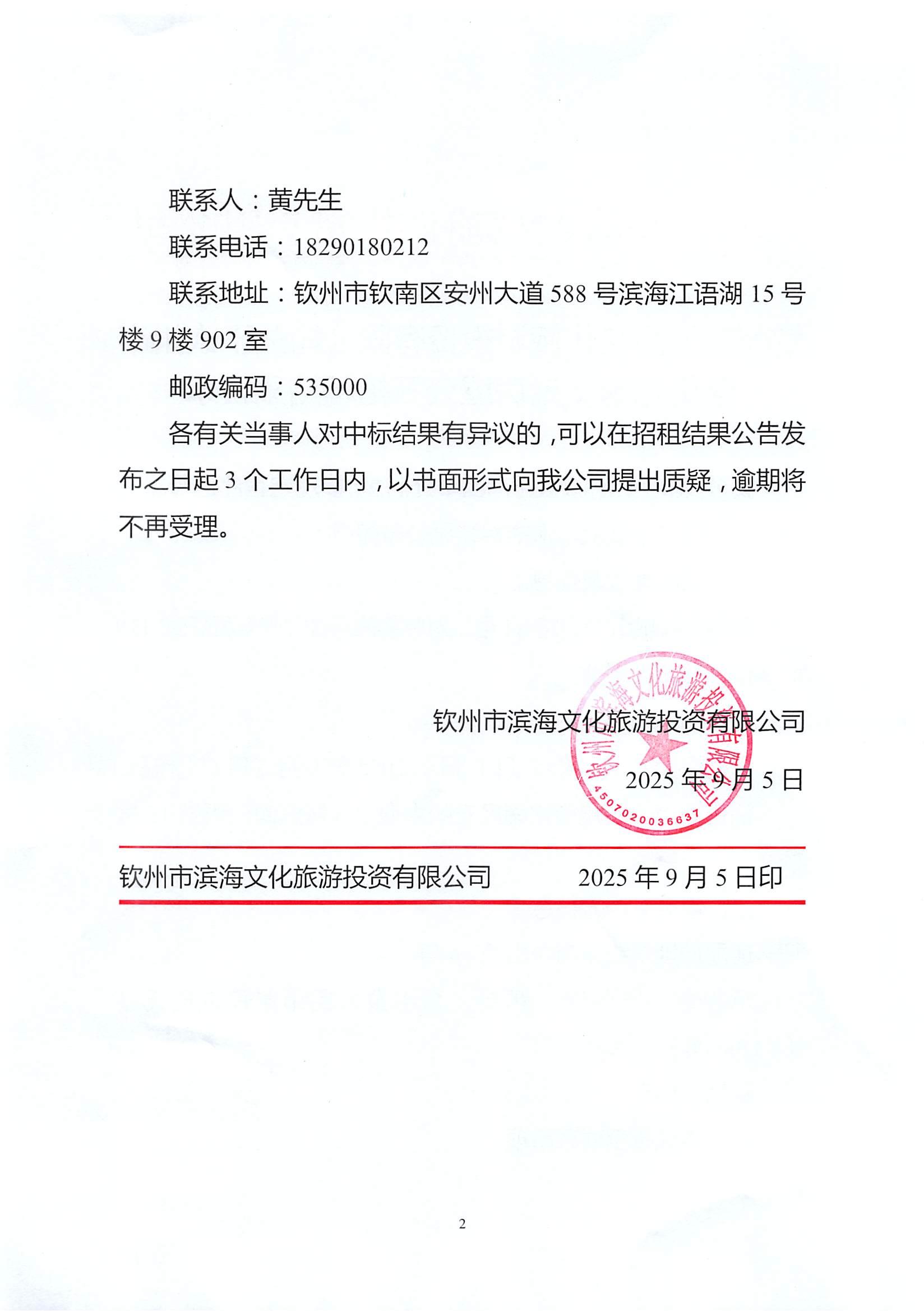 欽州市濱海文化旅游投資有限公司關于欽州市老街范圍1處房屋公開招租結果公示