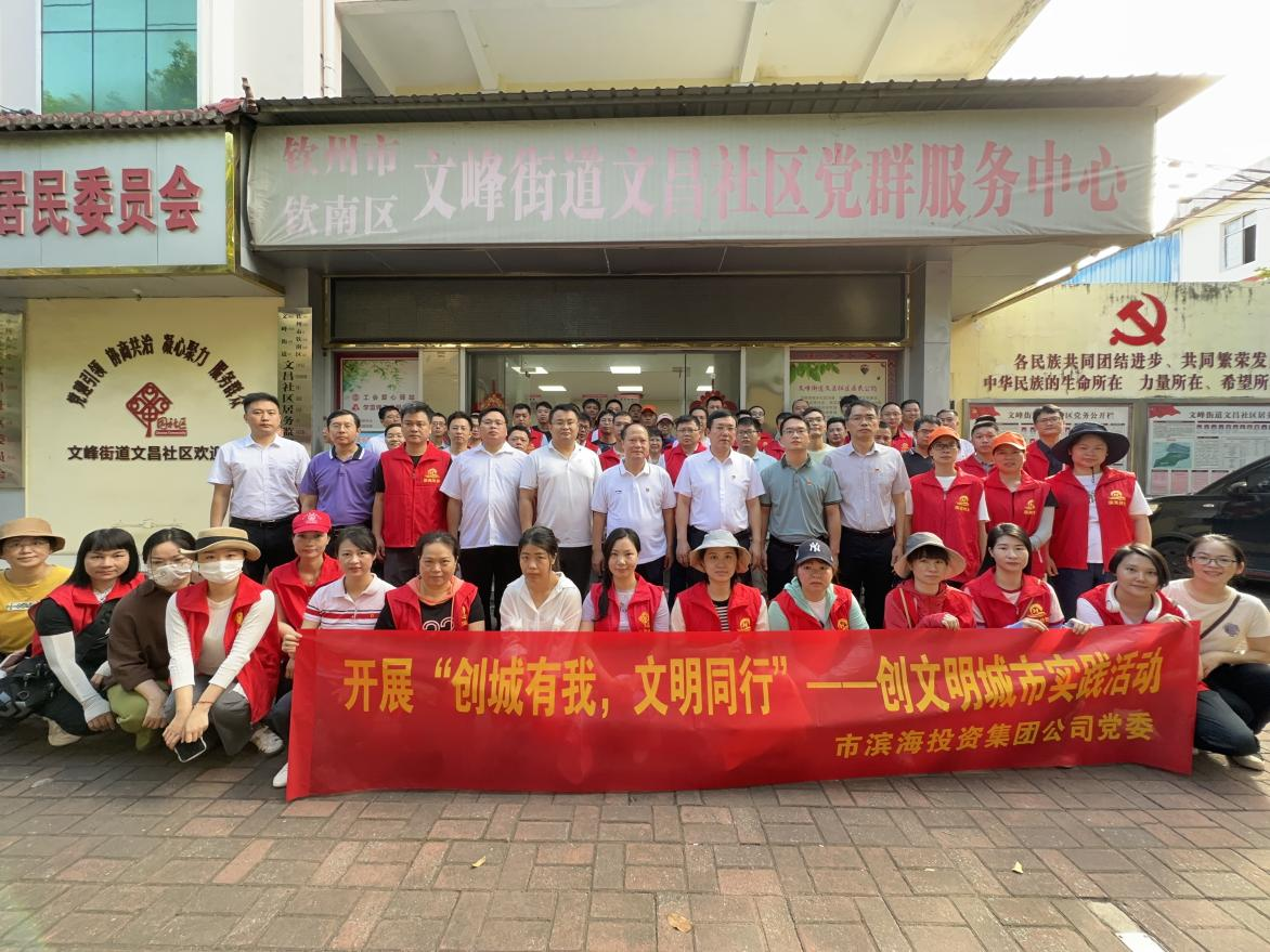 為進(jìn)一步鞏固深化全市文明城市創(chuàng)建成果,營(yíng)造濃厚的創(chuàng)城氛圍,全面推進(jìn)我市文明城市創(chuàng)建工作,市濱海投資集團(tuán)公司黨委于6月1日上午組織全體職工干部到文昌社區(qū)開展“創(chuàng)城有我、文明同行”實(shí)踐活動(dòng)。