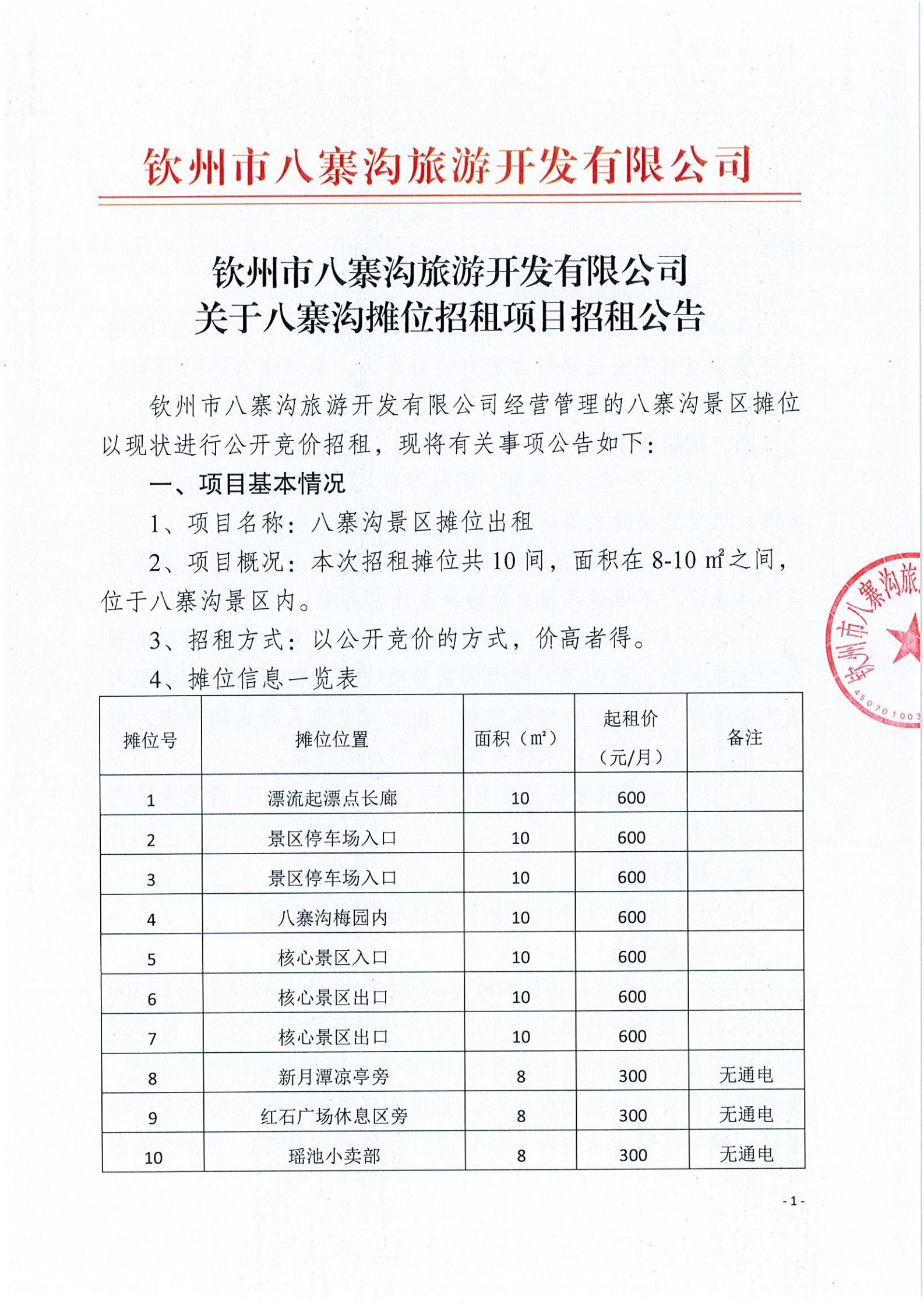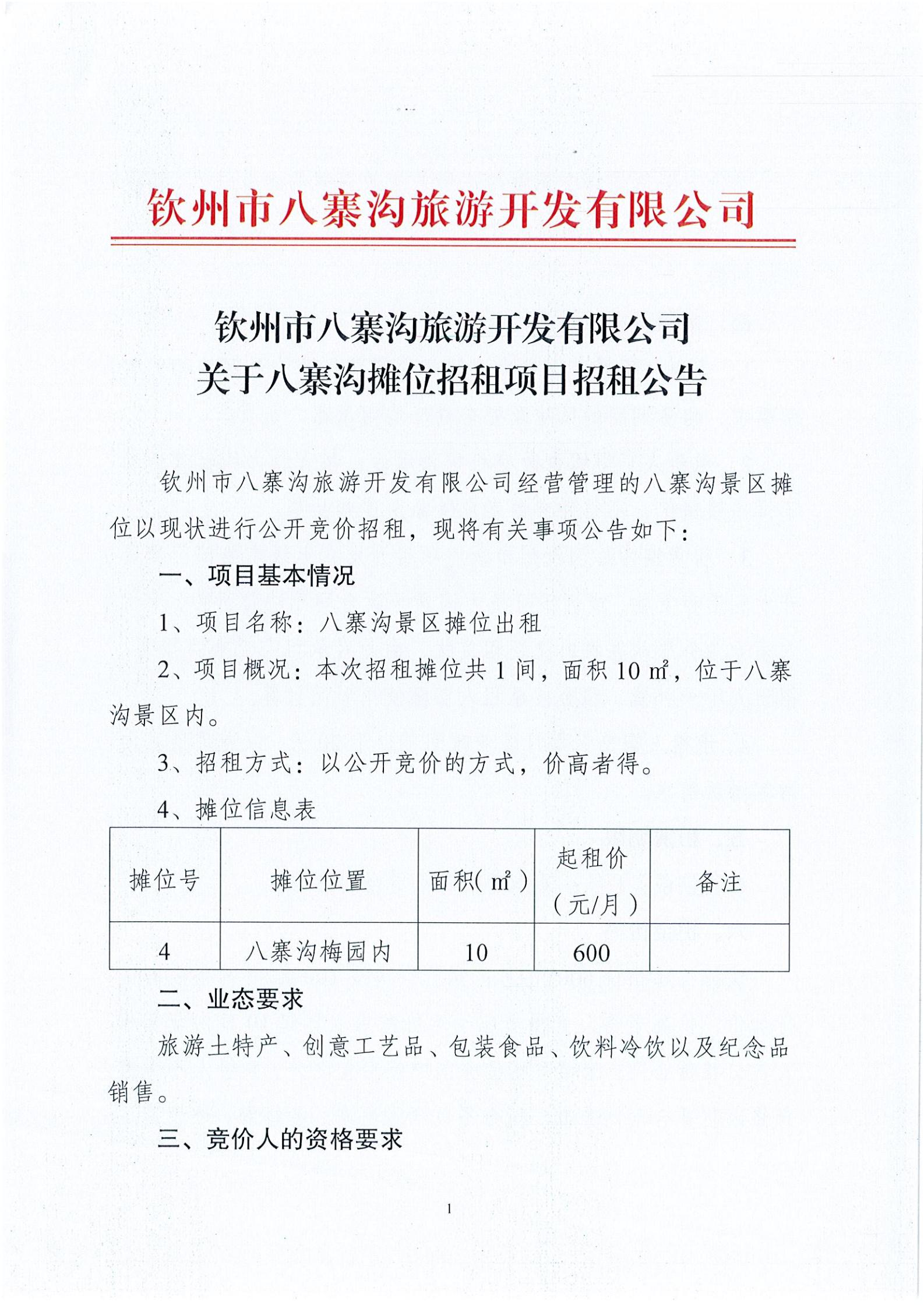 關(guān)于八寨溝攤位招租項目招租公告
