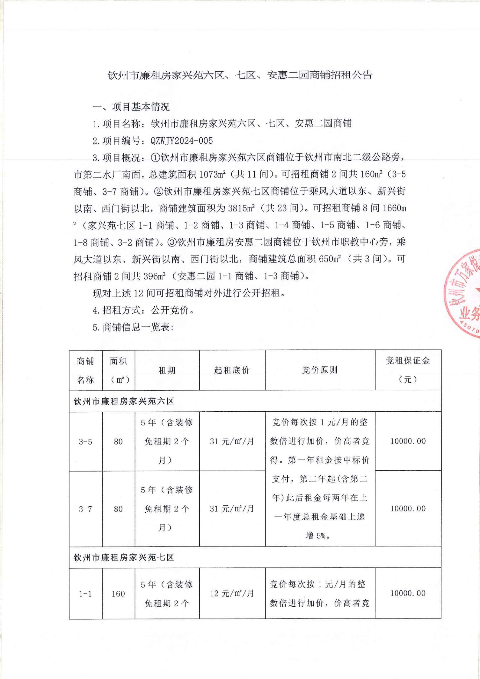 欽州市廉租房家興苑六區(qū)、七區(qū)、安惠二園商鋪招租公告