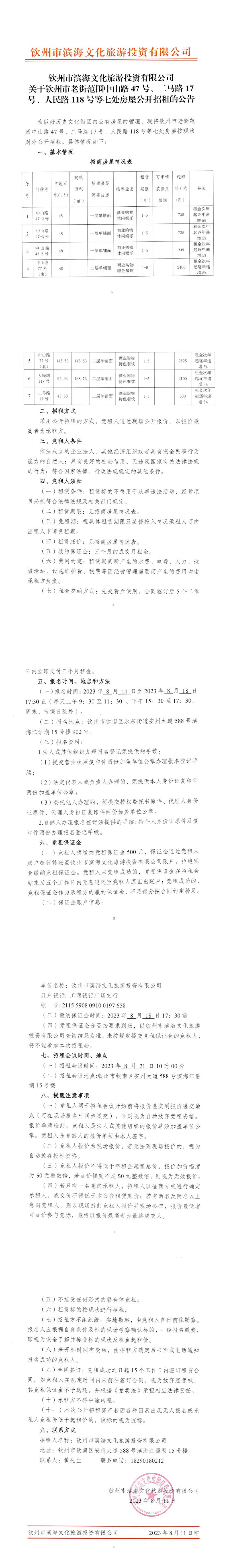 關于欽州市老街范圍中山路47號、二馬路17號、人民路118號等七處房屋公開招租的公告