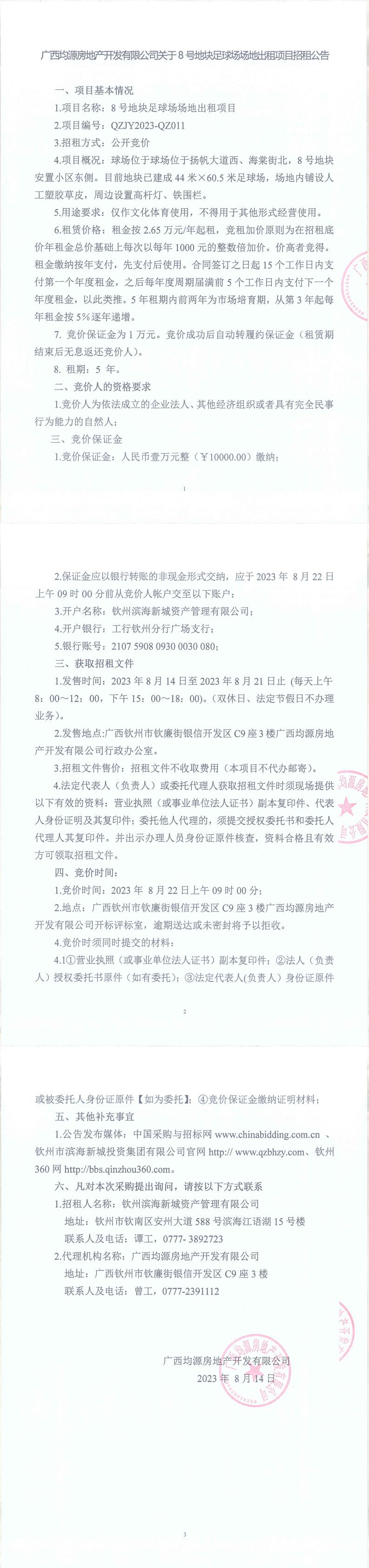 關于欽州市廉租房家興苑七區(qū)、安惠二園商鋪出租項目招租公告