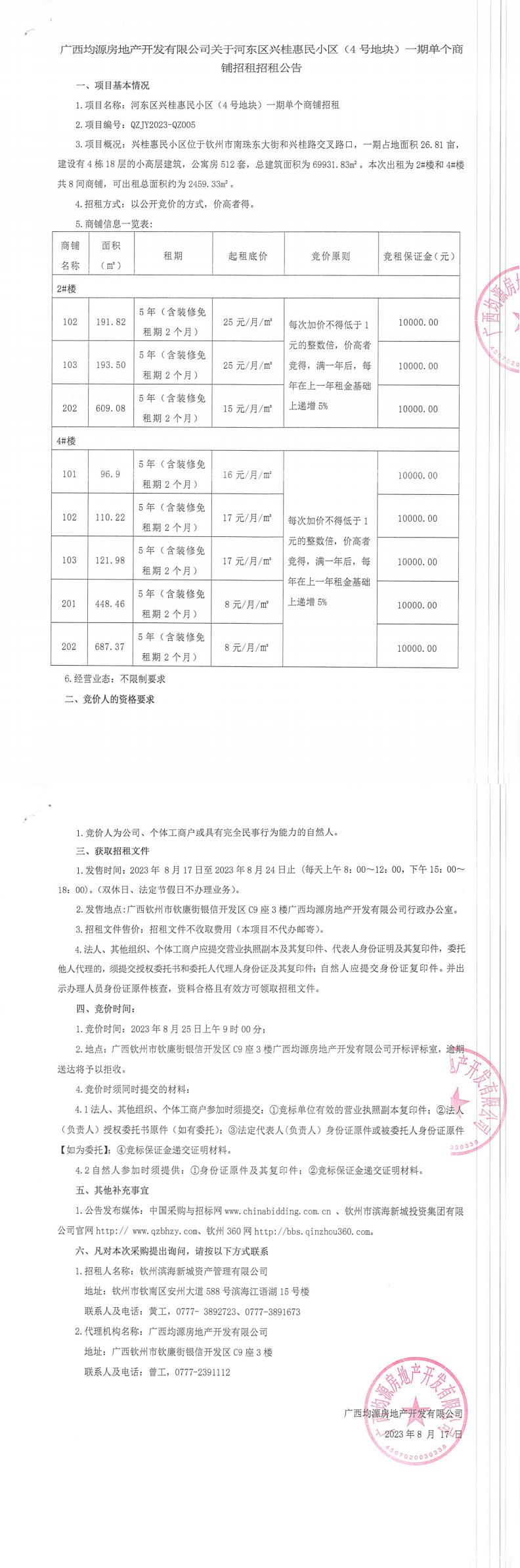 關于興桂惠民小區(qū)(4號地塊)二期商鋪招租公告