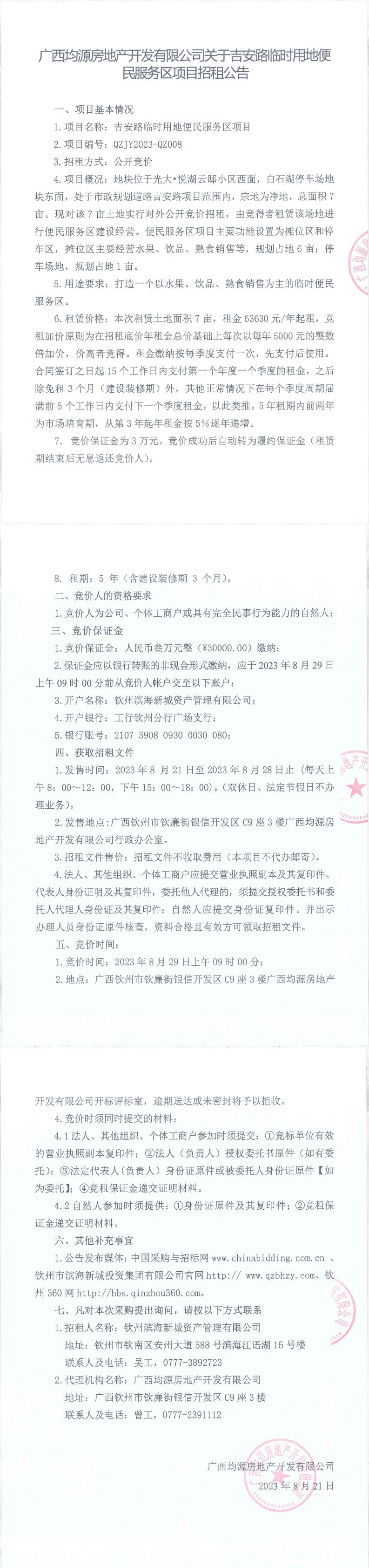 吉安路臨時用地便民服務區(qū)項目招租公告