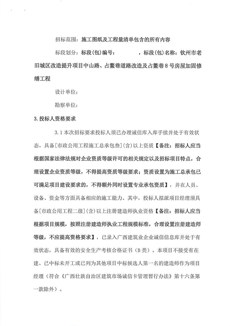 招標(biāo)公告 -欽州市老舊城區(qū)改造提升項(xiàng)目占鰲巷沿線房屋外立面修繕工程