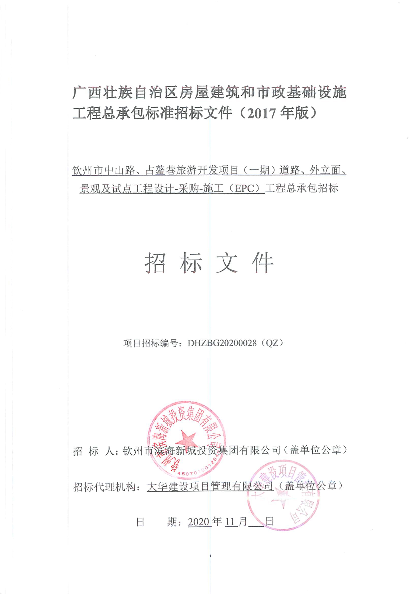 欽州市中山路、占鰲巷旅游開發(fā)項目(一期)道路、外立面、景觀及試點(diǎn)工程設(shè)計-采購-施工(EPC)工程總承包招標(biāo)公告