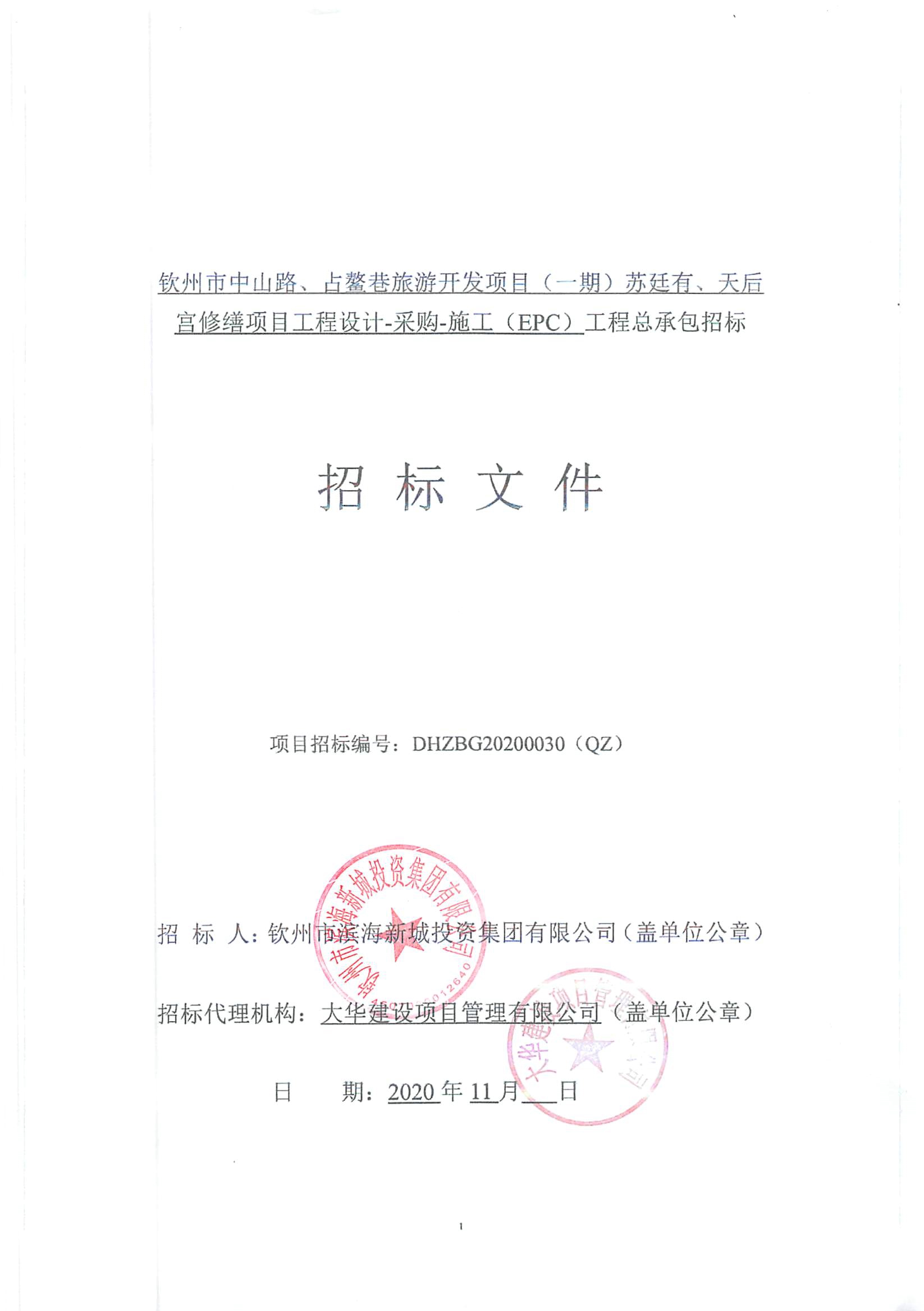 欽州市中山路、占鰲巷旅游開發(fā)項目(一期)蘇廷有、天后宮修繕項目工程設(shè)計-采購-施工(EPC)工程總承包招標(biāo)公告