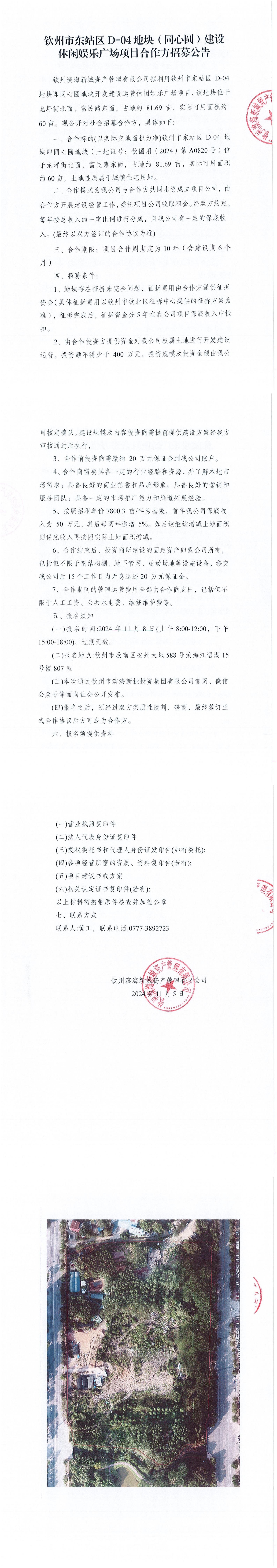 欽州市東站區(qū)D-04地塊(同心圓)建設(shè)休閑娛樂廣場(chǎng)項(xiàng)目合作方招募公告