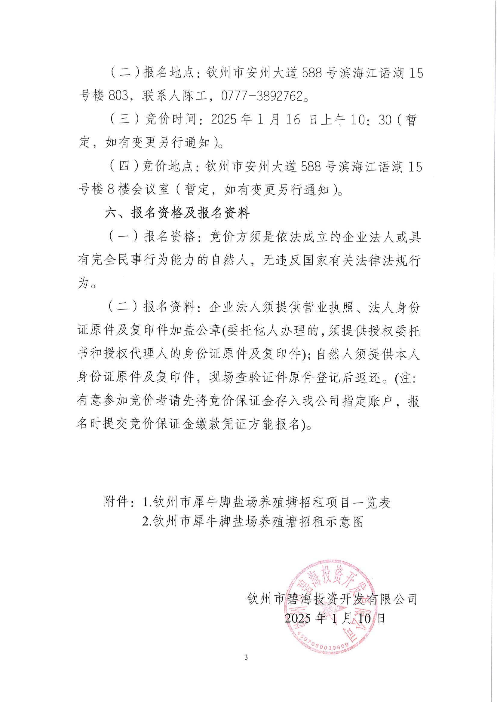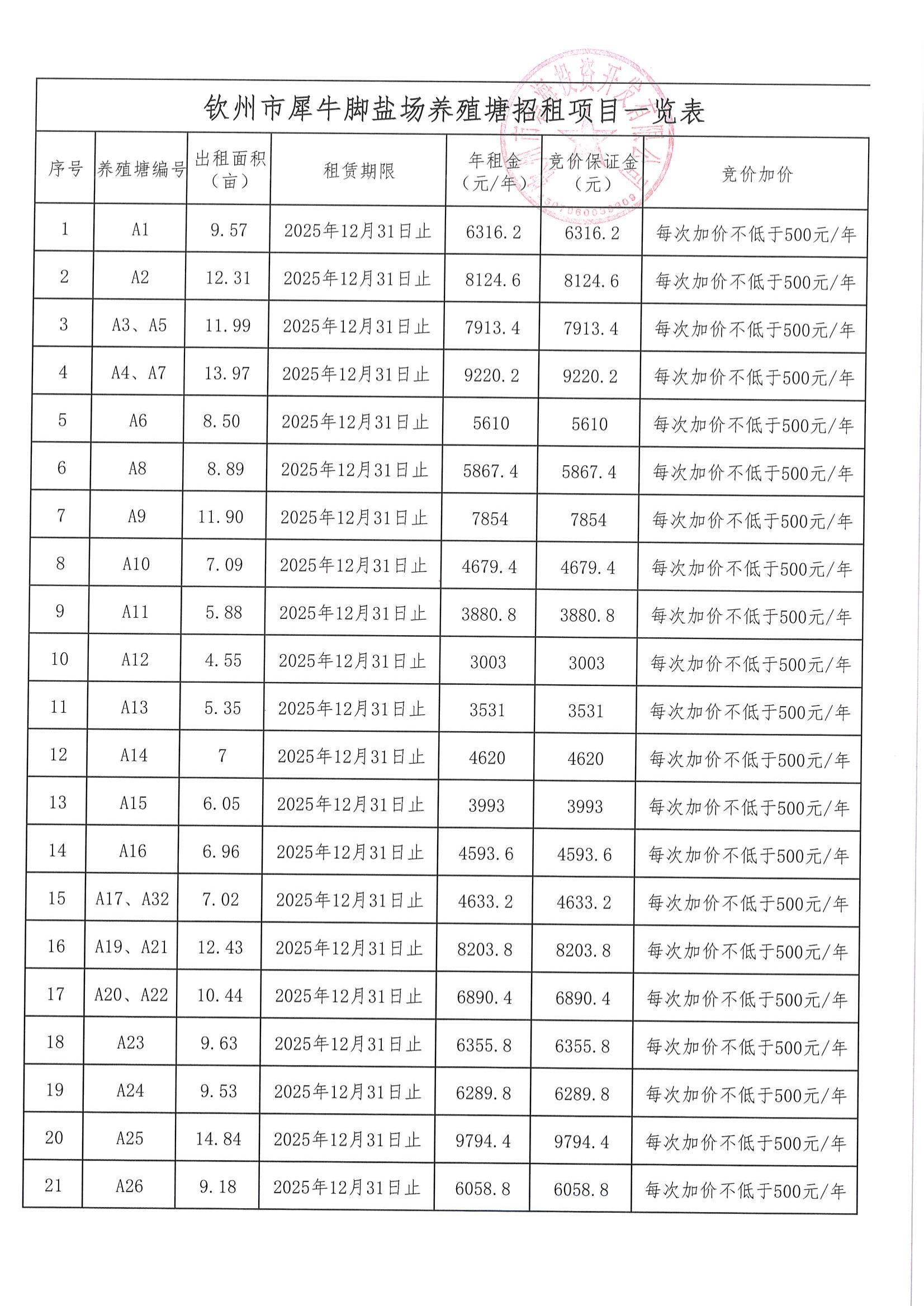關于犀牛腳鹽場養(yǎng)殖塘公開招租的公告