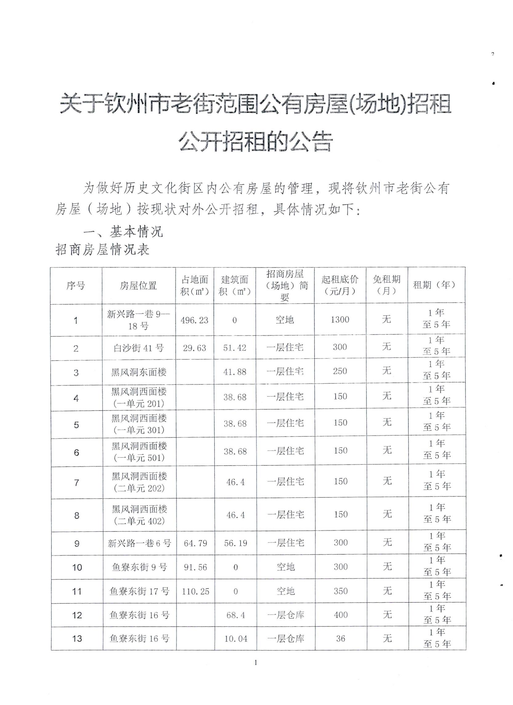 欽州市老街范圍公有房屋(場(chǎng)地)公開(kāi)招租