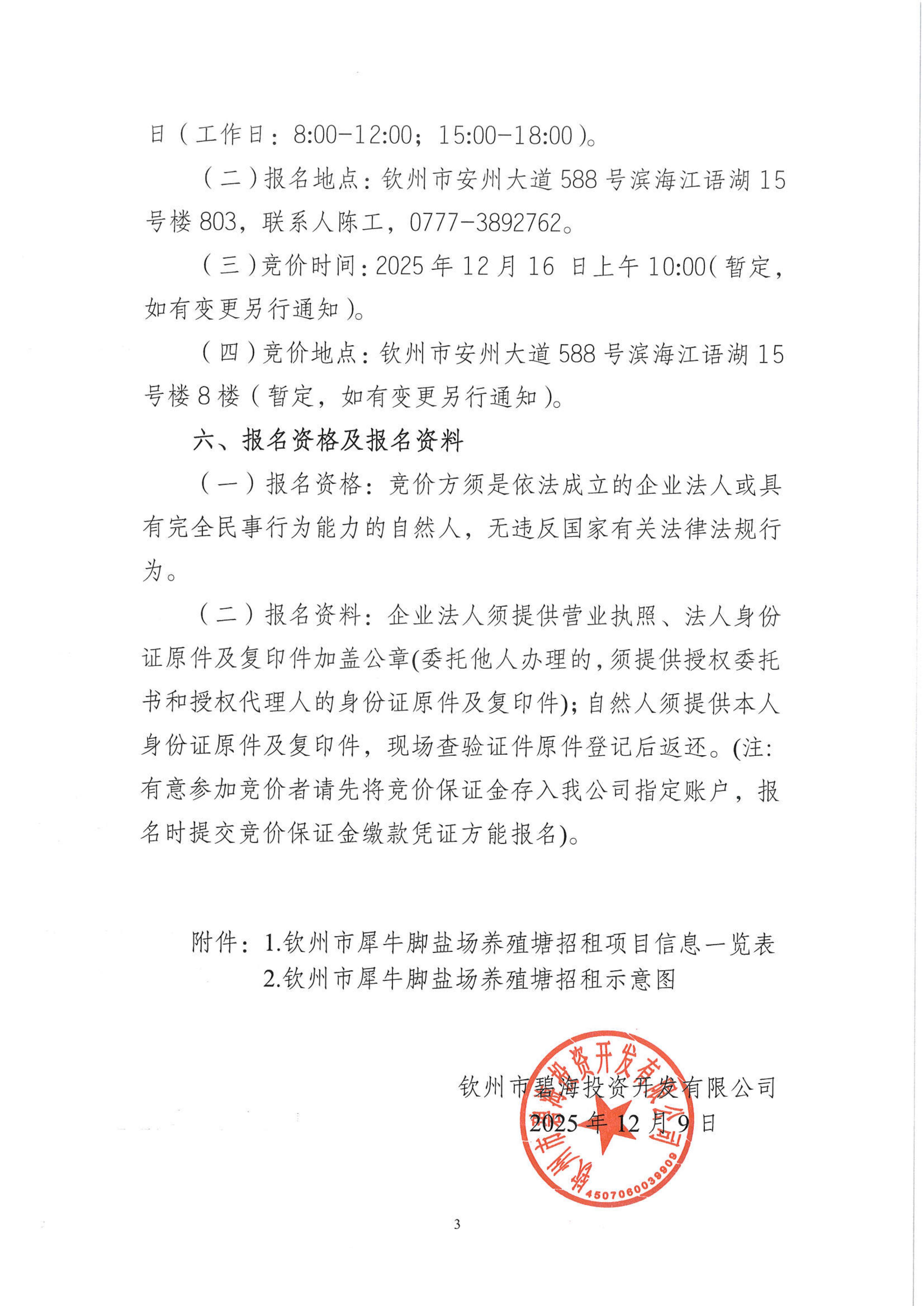 關于犀牛腳鹽場養(yǎng)殖塘公開招租的公告